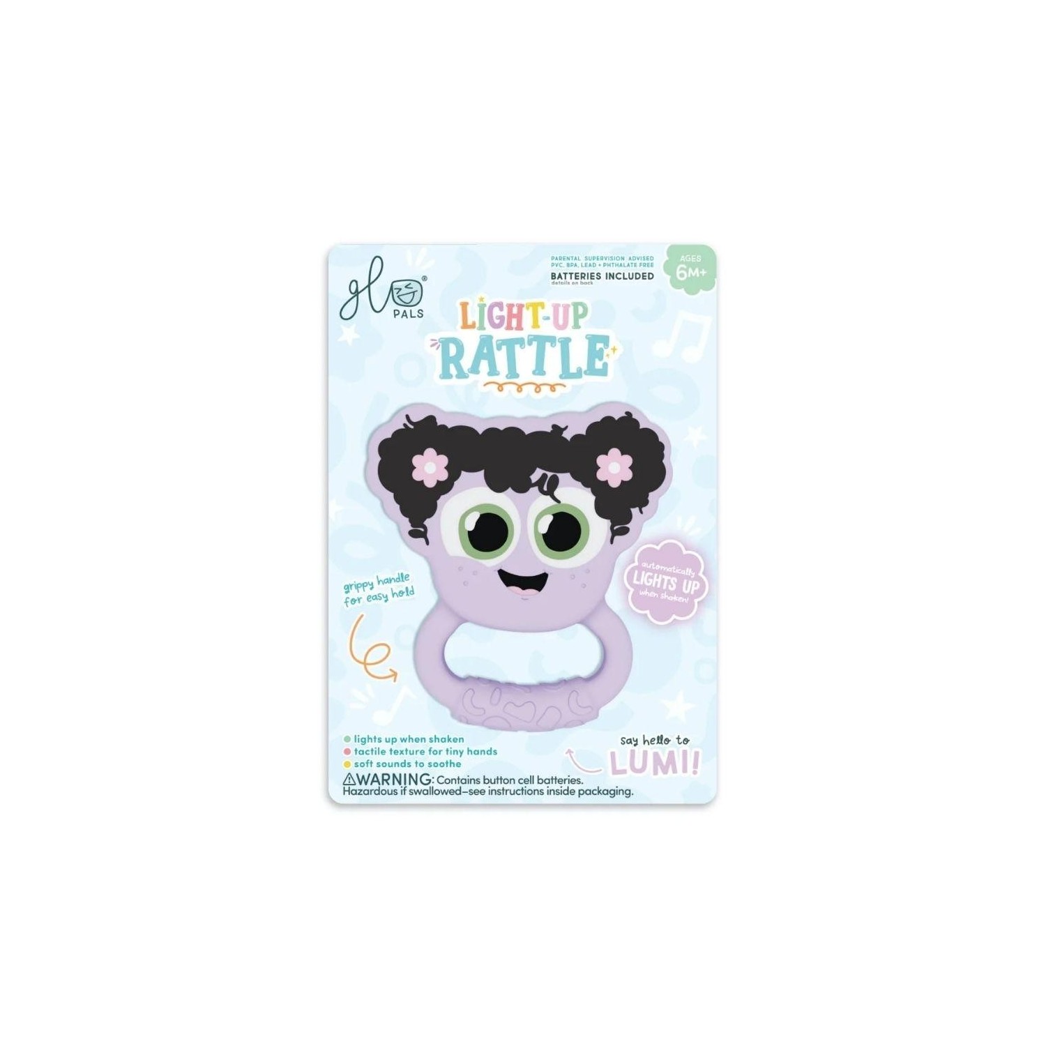 Fabricado con materiales seguros, suaves y duraderos. Pilas incluidas.