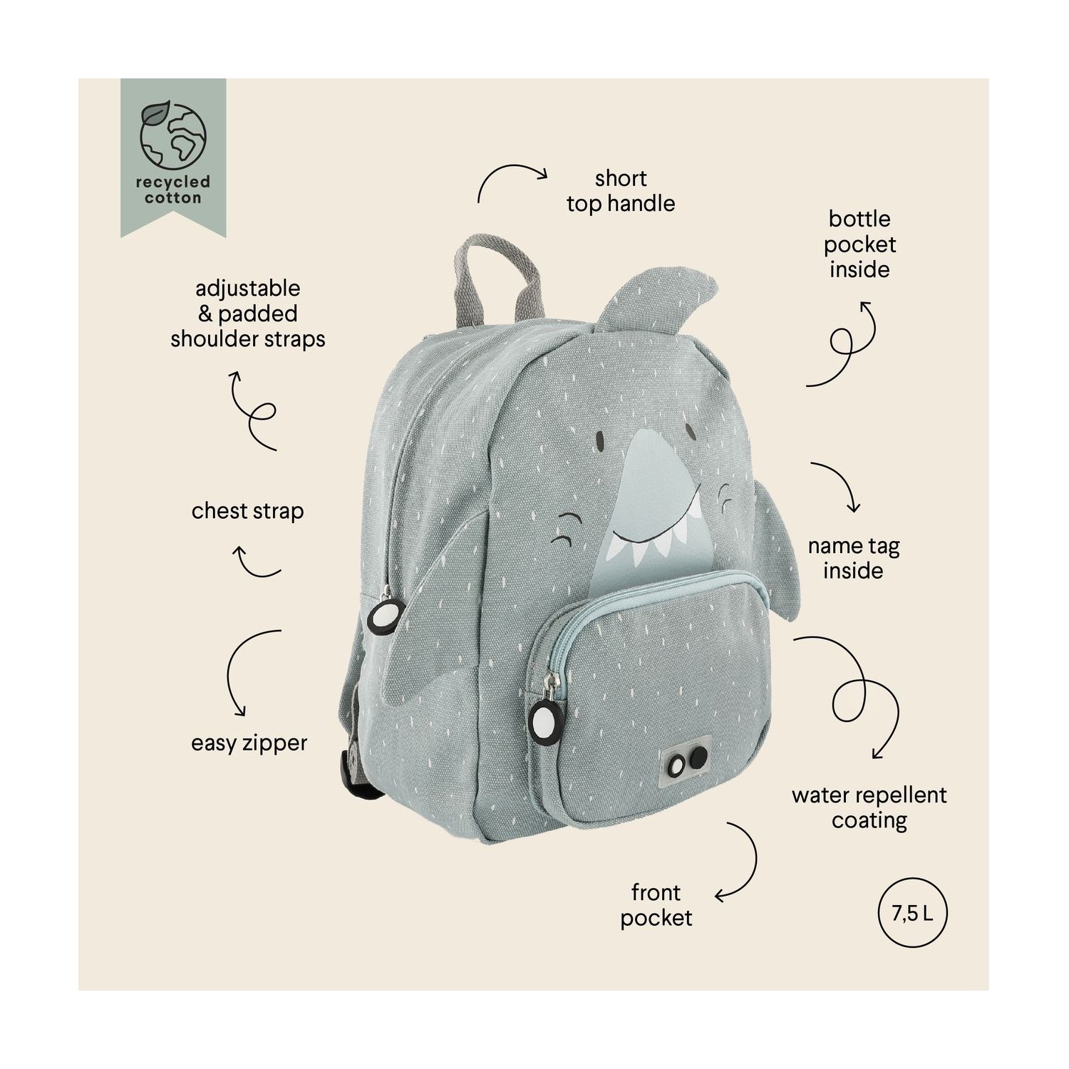 TRIXIE MOCHILA DE ANIMALES MR SHARK