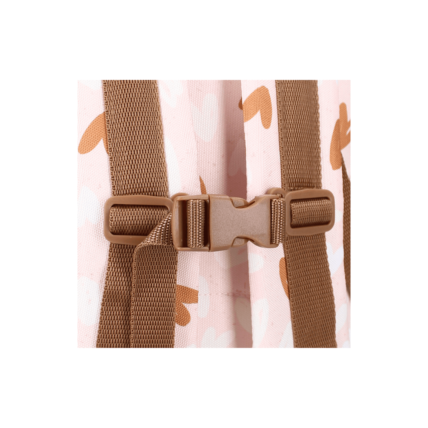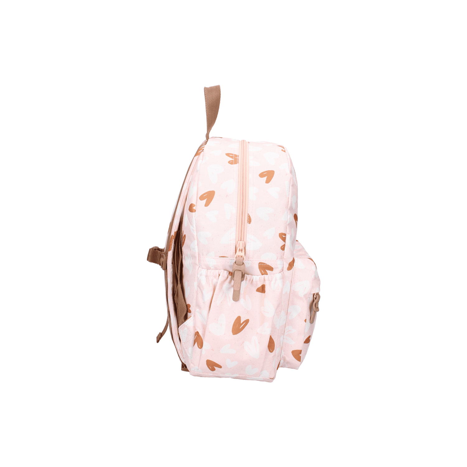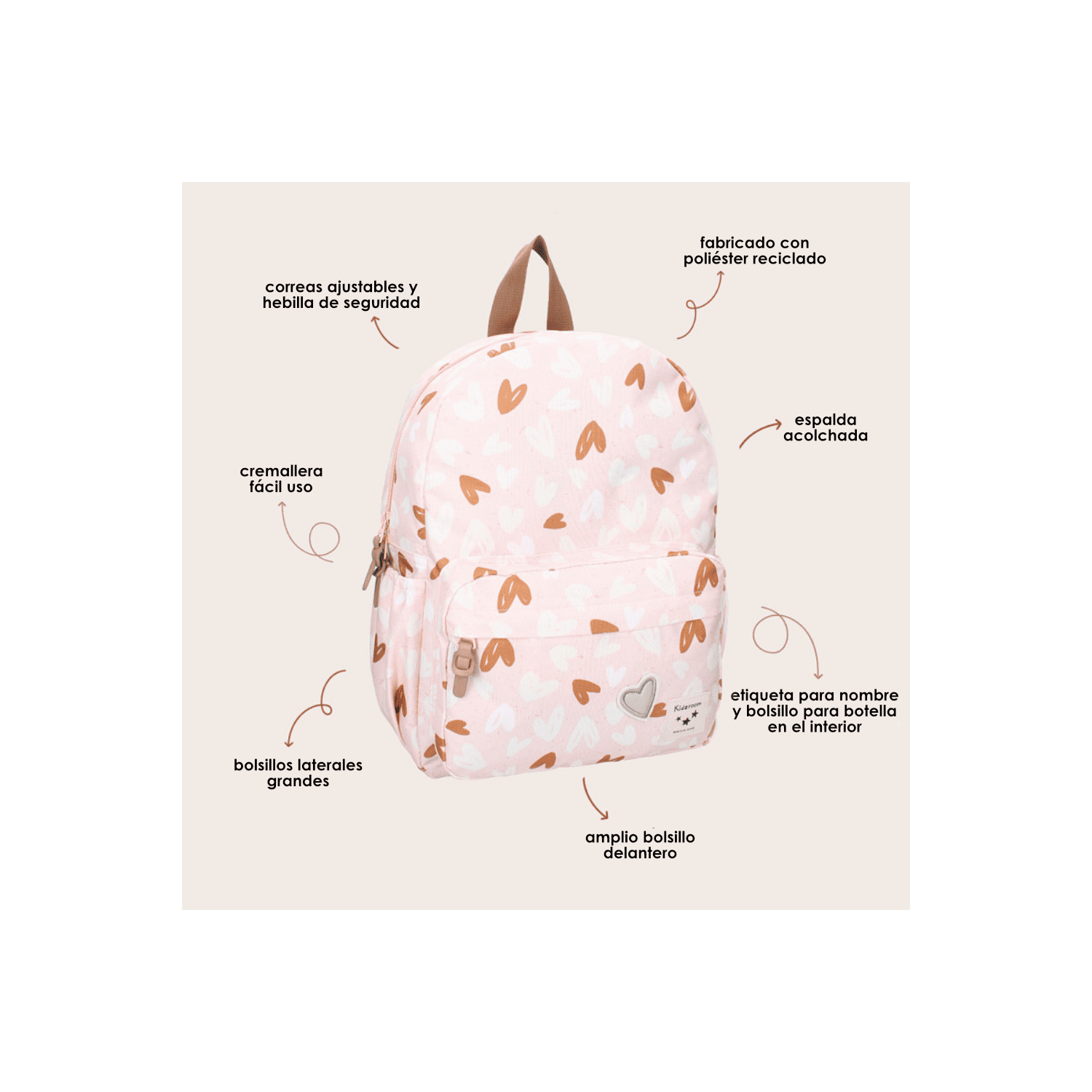 ¿Y si no fuera una monada de mochila? Seguro que tu peque querrá llevársela a todas partes. Esta mochila de la colección Loving Days tiene un bonito estampado de corazones. La mochila tiene un práctico bolsillo delantero con cremallera con espacio para los objetos más pequeños que deban ir contigo. El gran compartimento principal tiene una práctica cremallera doble y ofrece espacio para una fiambrera o ropa extra, por ejemplo.