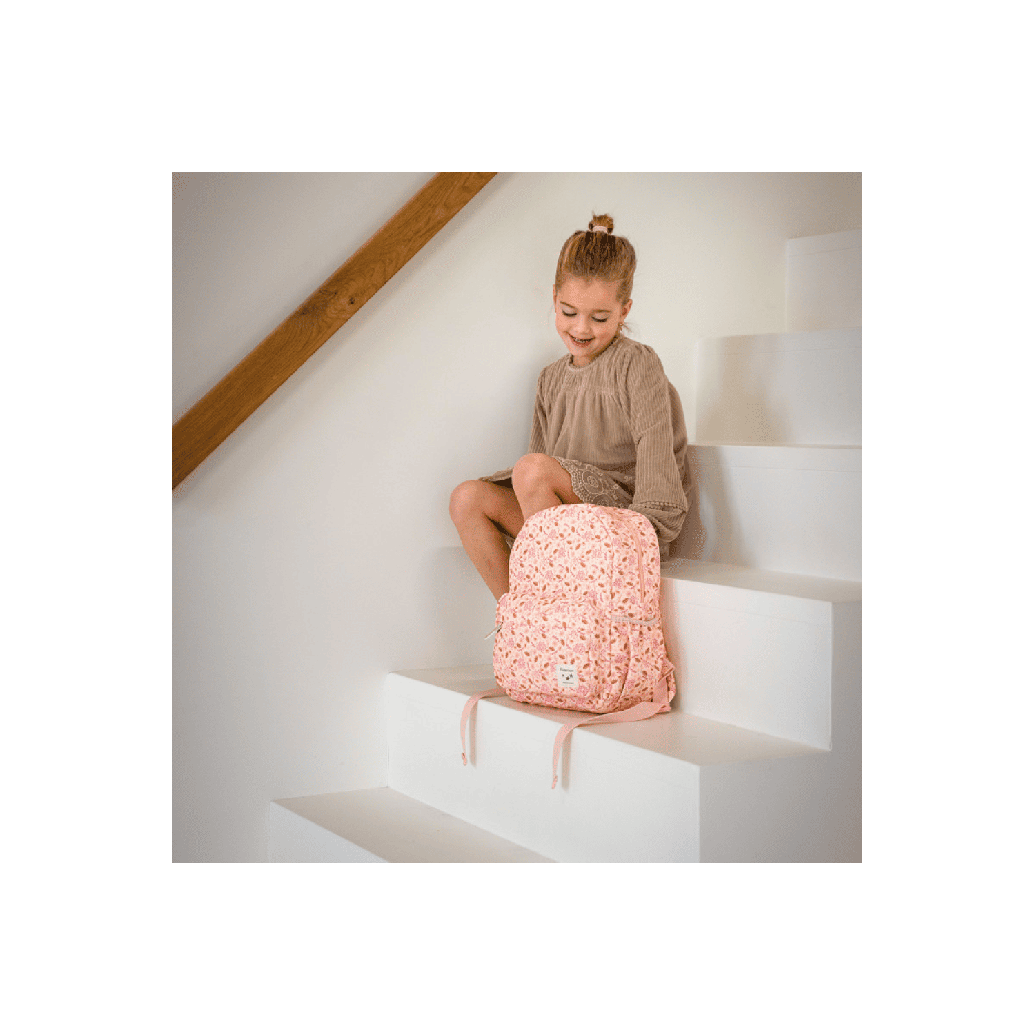 La mochila también tiene un práctico bolsillo lateral, perfecto para una botella de agua. Ideal para el colegio o para un día de paseo. La mochila se puede llevar por la trabilla de la parte superior o cómodamente a la espalda con los tirantes ajustables. La mochila está forrada para una mayor calidad y durabilidad. Las mochilas de la colección Enchanted Memories se fabrican en Europa. Esto garantiza productos de alta calidad con una entrega rápida.