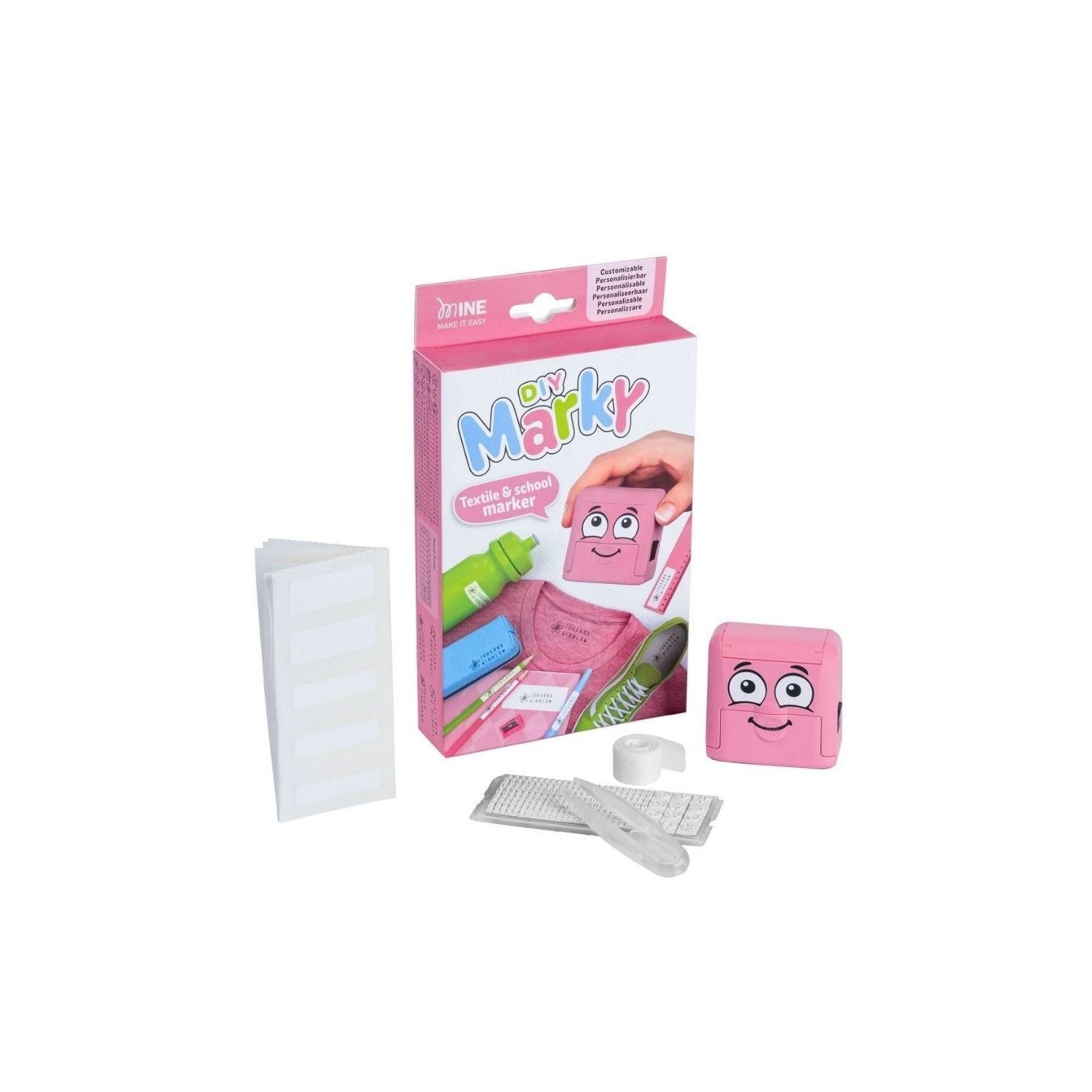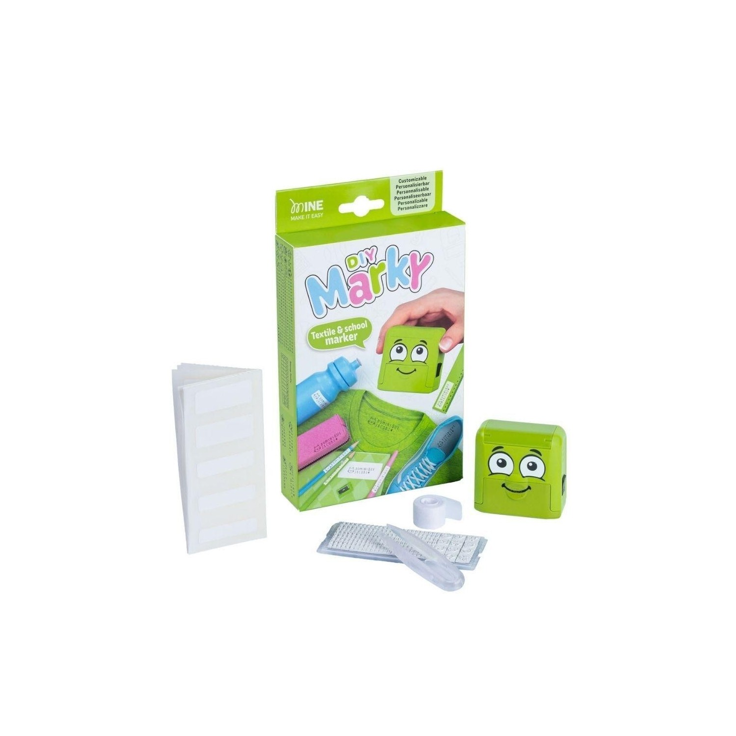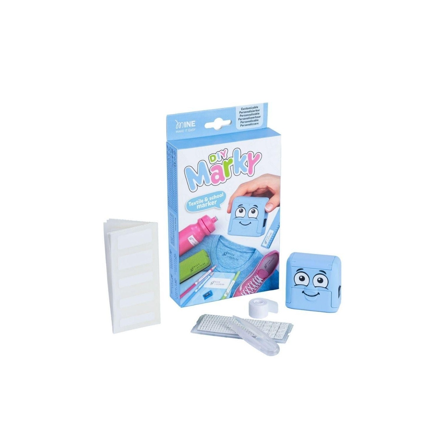 DIY Marky es un sello personalizable diseñado para marcar de forma rápida y sencilla la ropa y los objetos del día a día de los niños, ayudando a identificar y proteger sus pertenencias tanto en casa como en el cole.