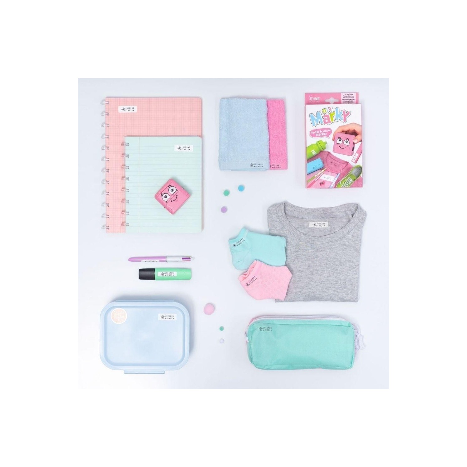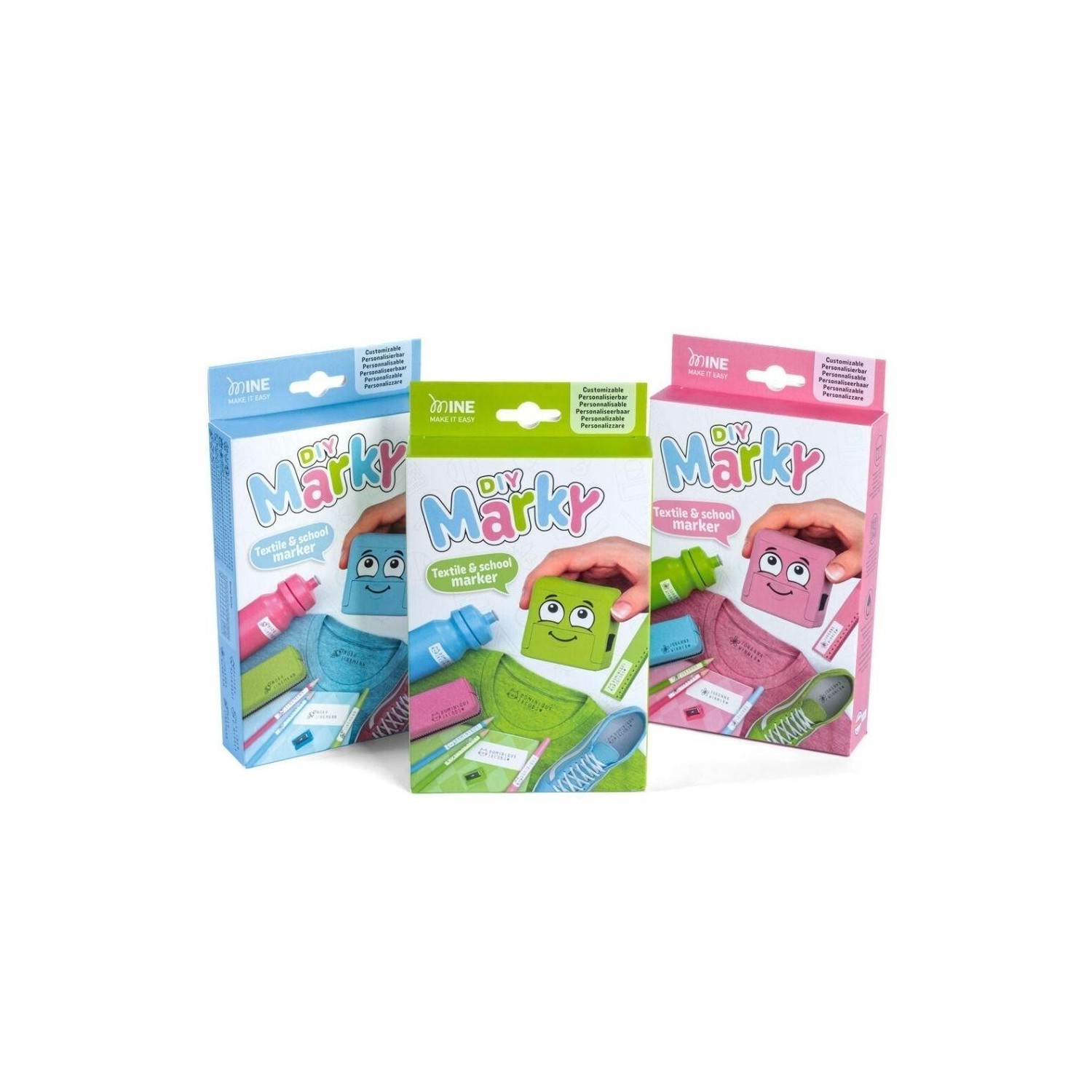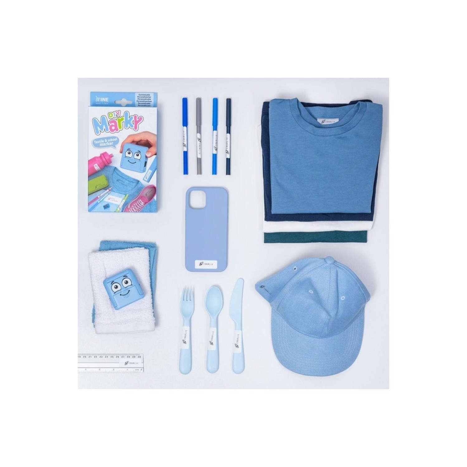 DIY Marky es un sello personalizable diseñado para marcar de forma rápida y sencilla la ropa y los objetos del día a día de los niños, ayudando a identificar y proteger sus pertenencias tanto en casa como en el cole.