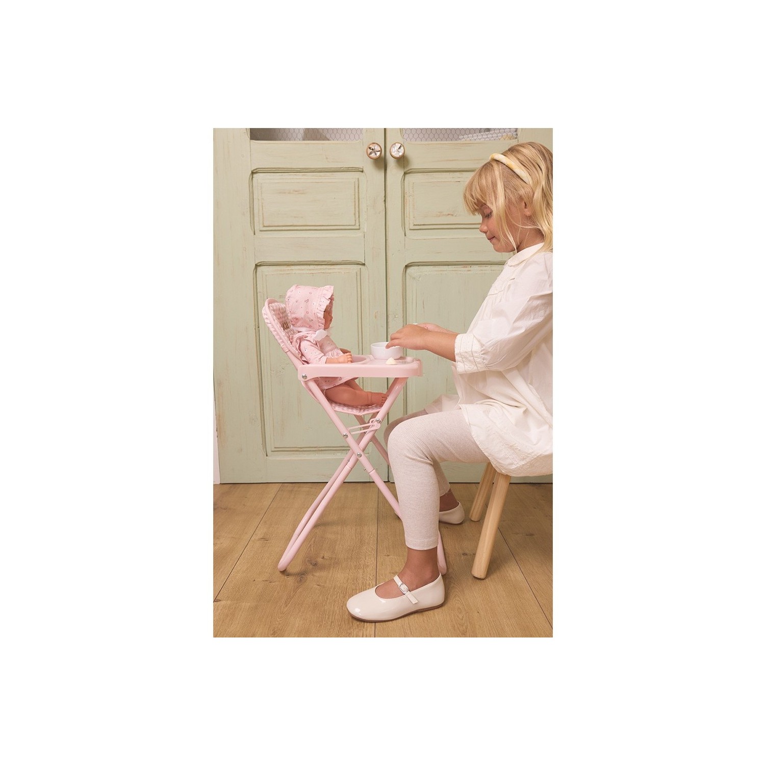 Haz que la hora dar de comer a tus muñecos sea aún más especial con esta preciosa trona plegable para muñecos de Monnëka, ideal para peques que disfrutan imitando las rutinas del día a día. Gracias a su diseño funcional esta trona es perfecta para alimentar a muñecos o peluches con total comodidad.