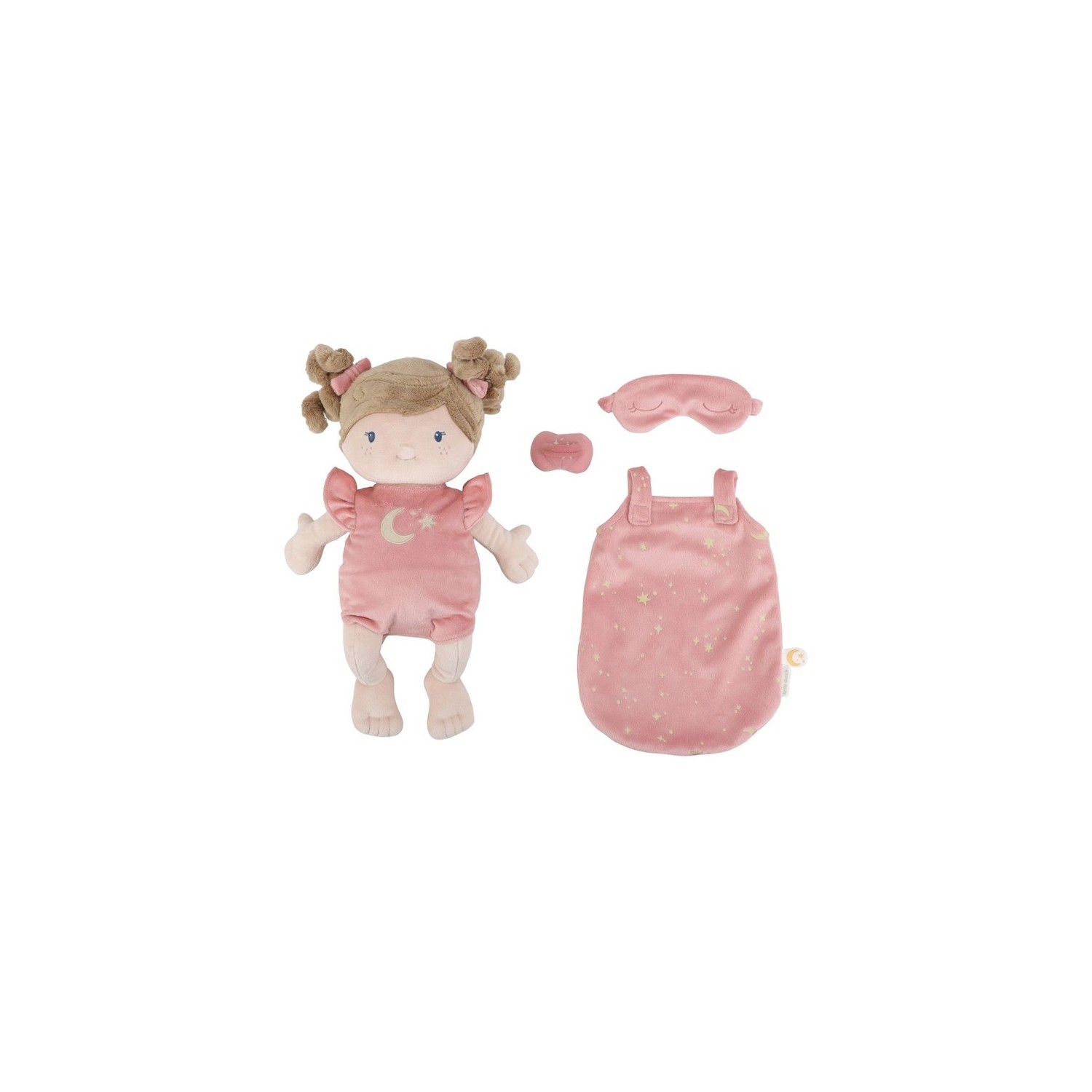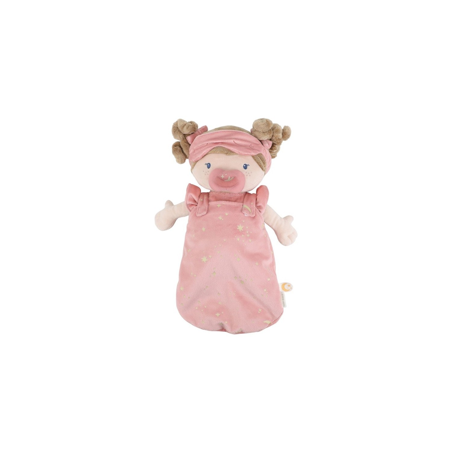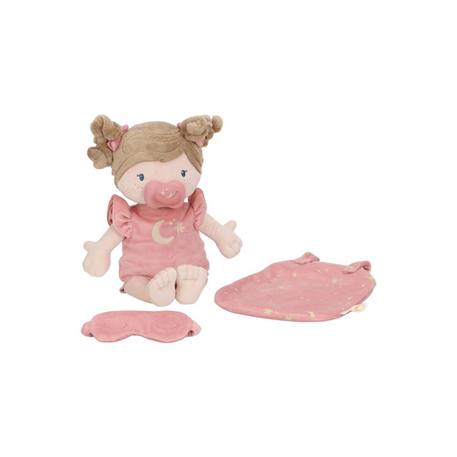 Conoce a Rosa, la suave compañera de sueño de tu peque. Con su dulce carita, su cuerpo suave y mimoso y su adorable saco de dormir con estampado de lunas y estrellas, te brinda comodidad y seguridad. Su pelele y su saco de dormir se pueden poner y quitar para disfrutar aún más del juego. Rosa siempre está lista para acurrucarse y echarse una siesta juntos.
