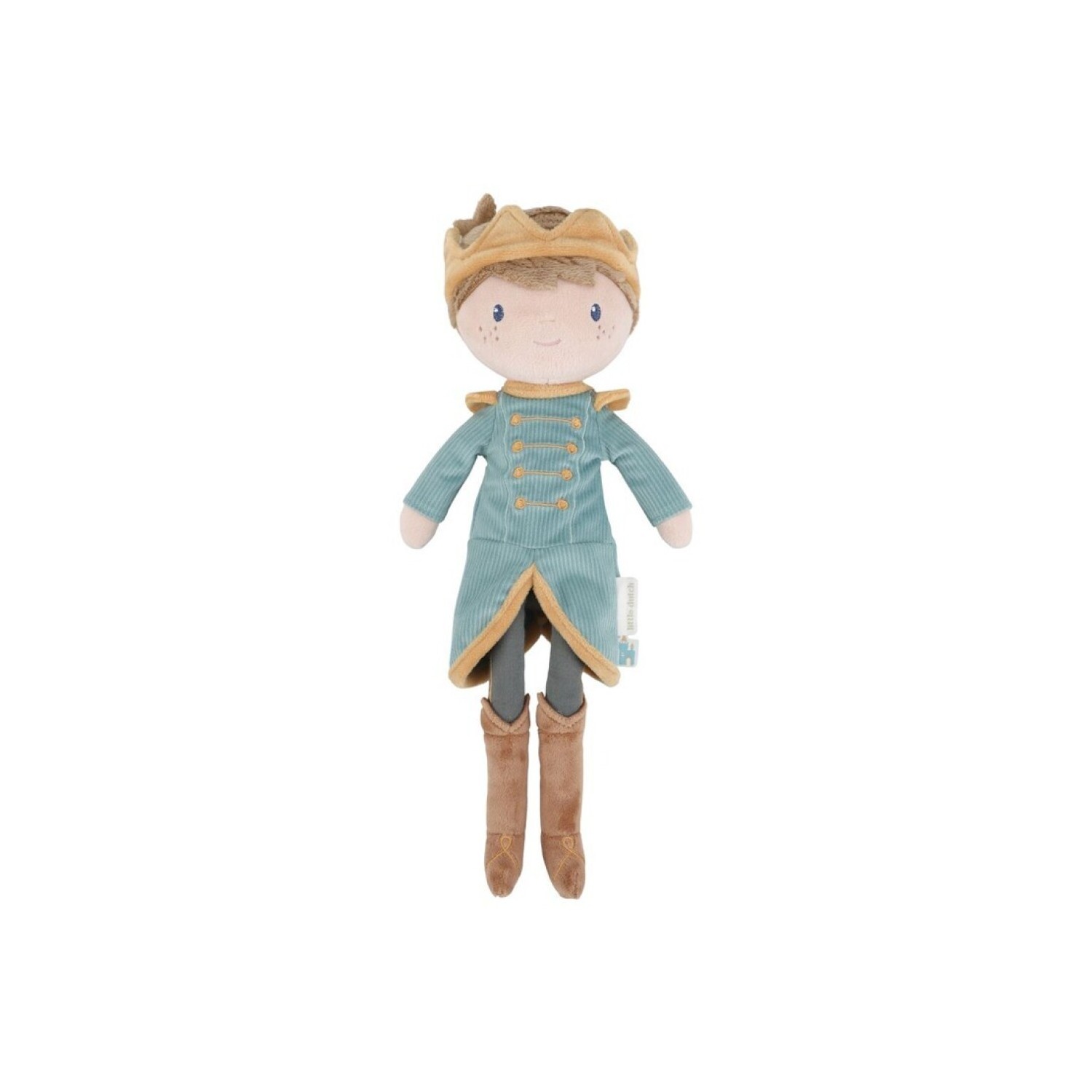 Conoce al Príncipe Jim, el suave y mimoso muñeco, listo para jugar y mimarse sin parar. Con su preciosa chaqueta acanalada, su corona dorada y sus encantadores detalles bordados, Jim invita al juego imaginativo. Su cálida apariencia y sus suaves materiales lo convierten en un fiel amigo para cualquier niño. El Príncipe Jim mide 35 cm.