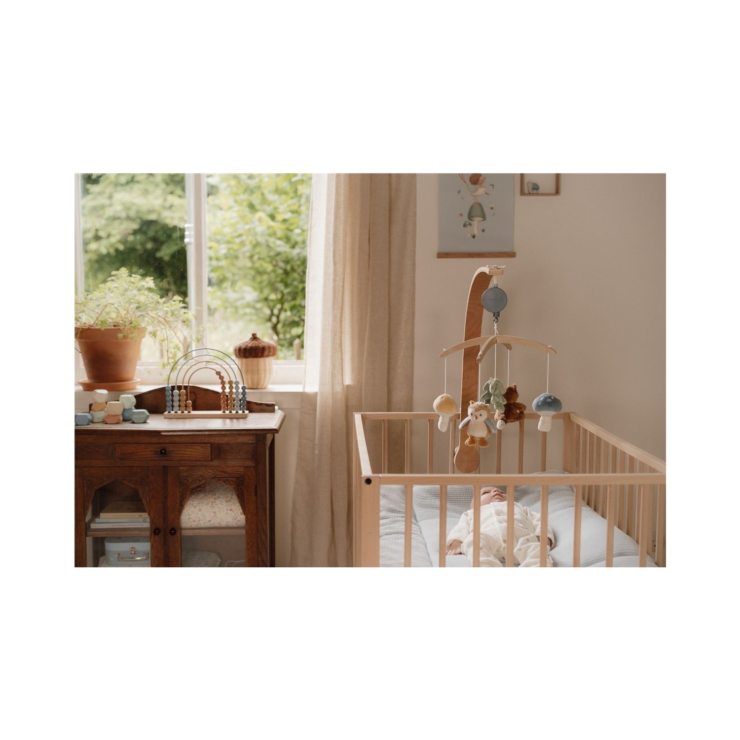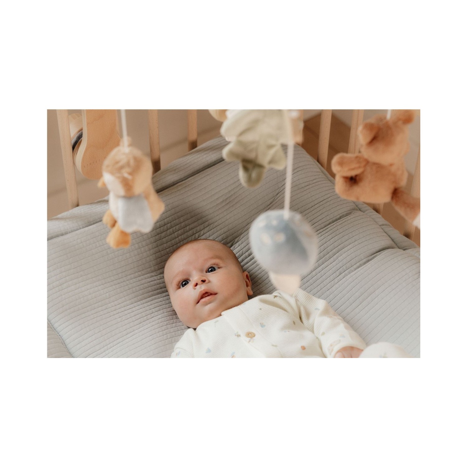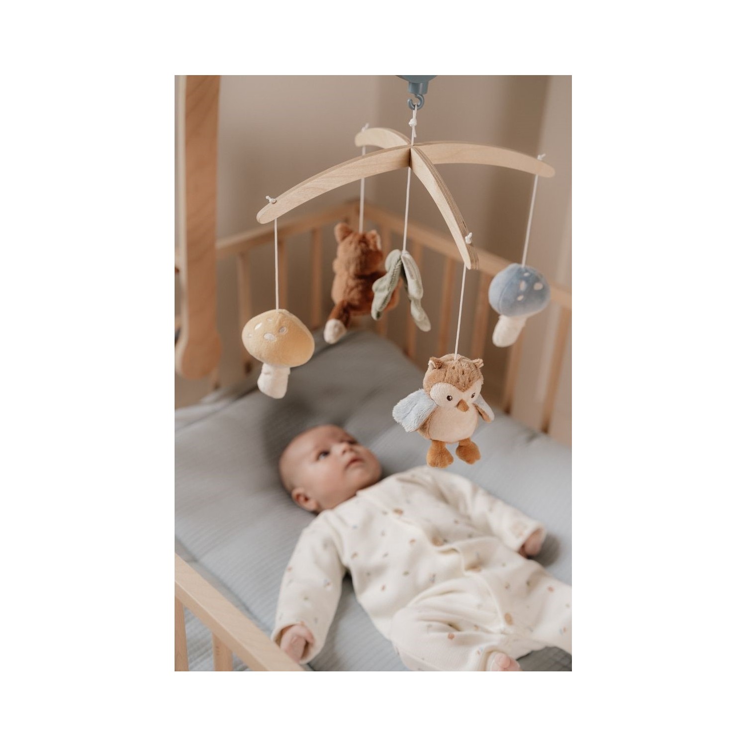 Sigue el sonido y observa cómo giran el pequeño zorro y el búho. Este simpático móvil musical de madera tiene un efecto relajante en los bebés gracias a la dulce canción de cuna. Cuenta con cinco juguetes colgantes diferentes para mirar de la colección Forest Friends: el zorro, el búho, dos setas y una hoja. Mientras tu pequeño disfruta del movimiento de cada juguete, el móvil musical estimula el desarrollo visual. El móvil musical es adecuado desde el nacimiento.