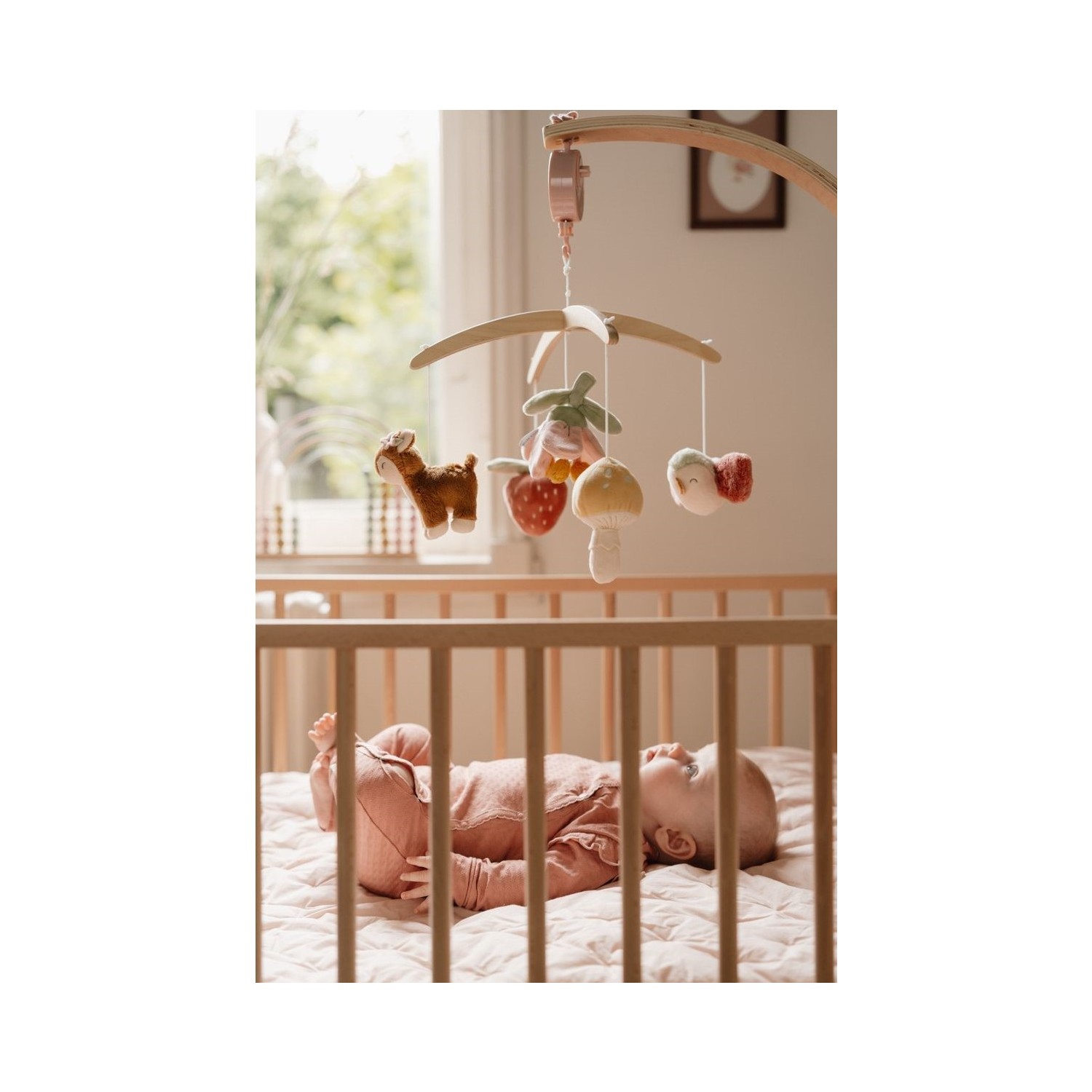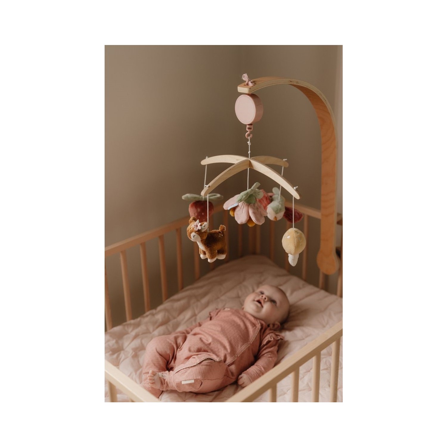Sigue el sonido y observa cómo giran el cervatillo y el pajarito. Este simpático móvil musical de madera tiene un efecto relajante en los bebés gracias a la dulce canción de cuna. Cuenta con cinco juguetes colgantes diferentes para mirar de la colección Fairy Garden: un cervatillo, una fresa, una flor, una seta y un pájaro. Mientras tu pequeño disfruta del movimiento de cada juguete, el móvil musical estimula el desarrollo visual.