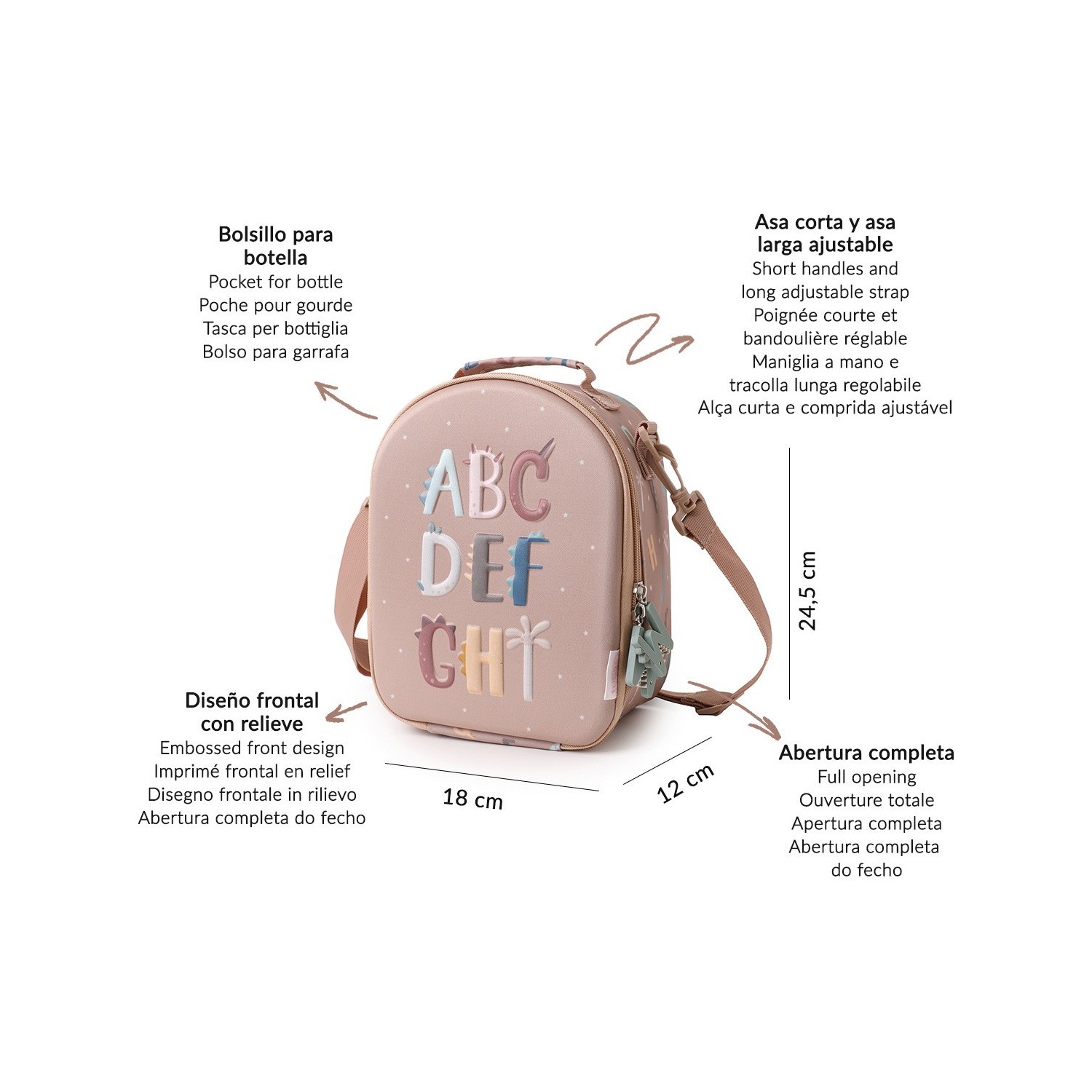 NEVERAS PORTATIL BOLSA MERIENDA 3 D GEOMETRIC NATURE TUTETE 91793 22,95 € U BEIG  Añadir al carrito Diseño 3D con personaje en relieve en la parte frontal Composición: 90% RPET + 10%PEVA Material interior aislante de alta calidad Medidas: 24.5 cm alto x 18 cm ancho x 12 cm fondo Bolsillo lateral de rejilla elástica para botella o accesorios Etiqueta plastificada en la parte trasera (10.5 x 6 cm) perfecta para escribir el nombre y datos del niño, o... Añadir al carrito