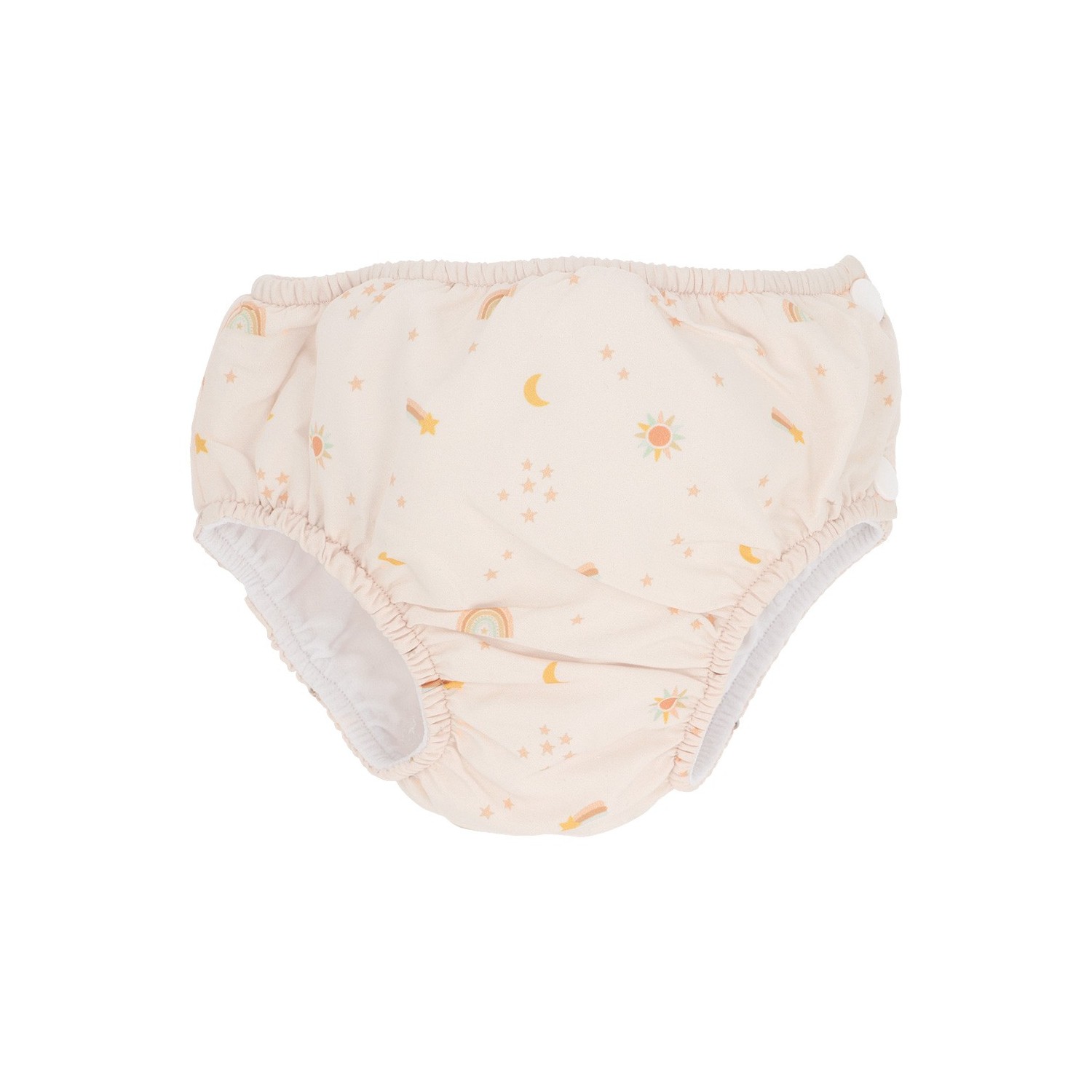 Los bañadores pañal de las colecciones Verano Monnëka han sido confeccionados con una tela especial que protege a la piel de los rayos solares además que evita fugas sólidas cuando el peque se está bañañdo en la playa o la piscina.