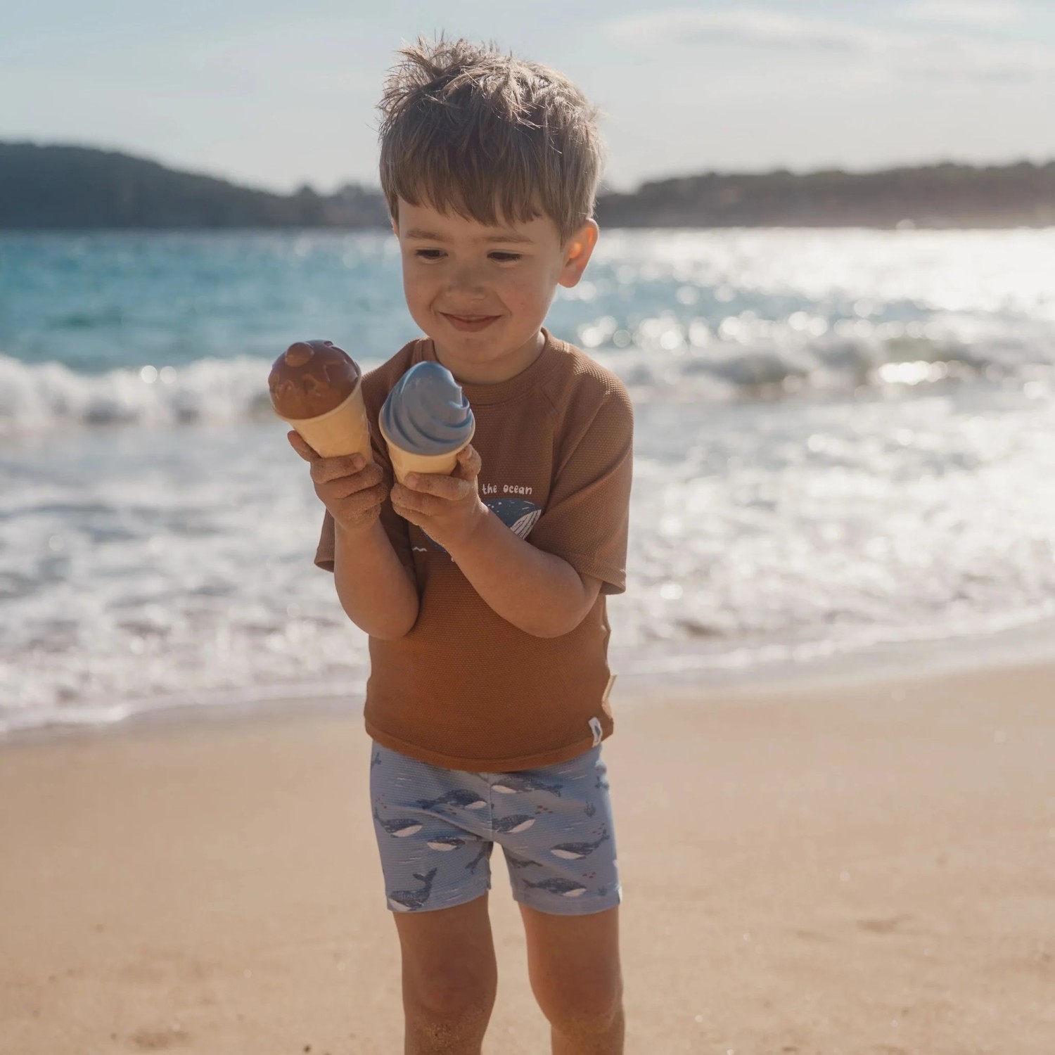 Este bañador tipo bóxer de pierna corta en azul completa el conjunto Ocean Splash, diseñado específicamente para los niños más activos que necesitan total libertad de movimiento para nadar y jugar.