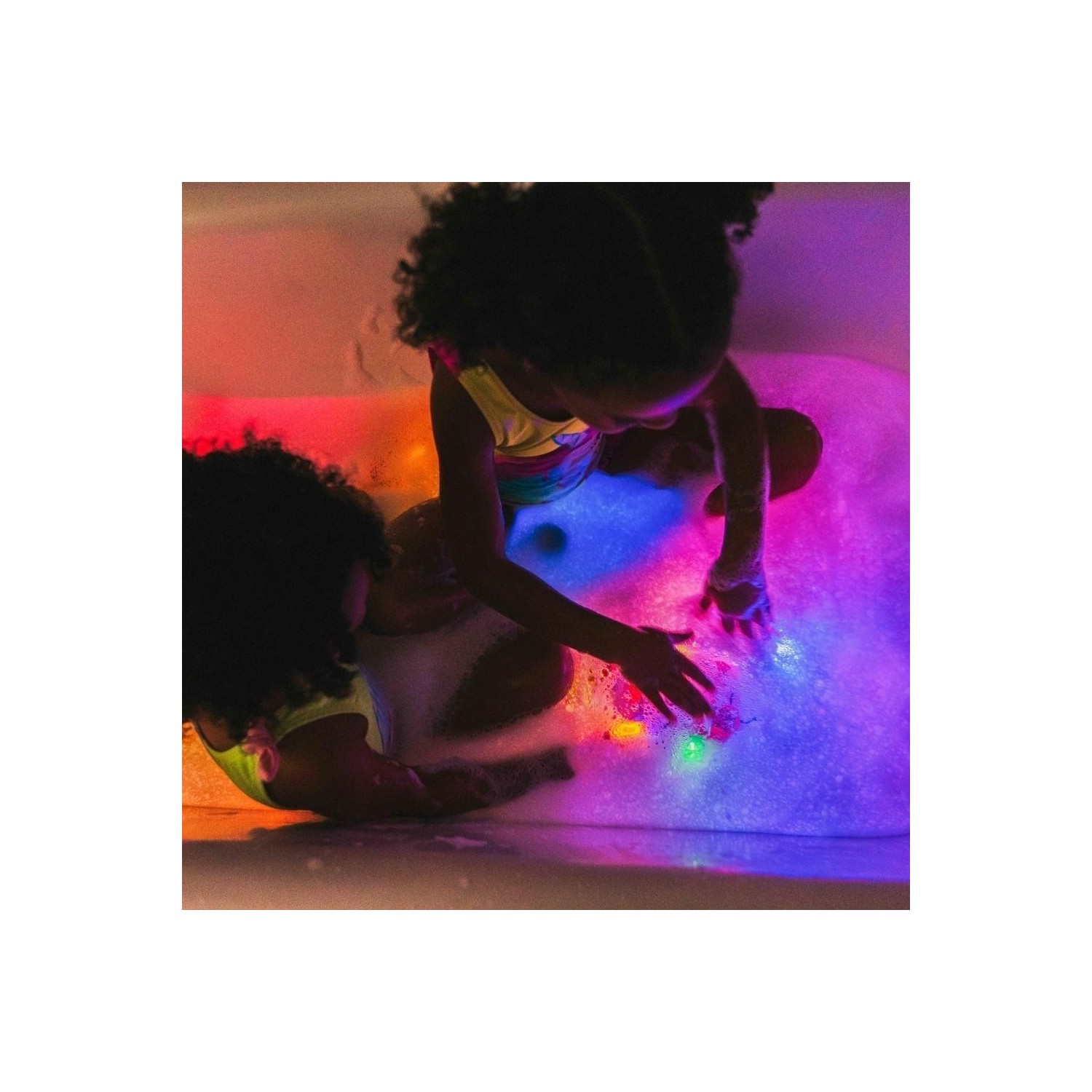 Perfectos compañeros de juego en una mesa sensorial para trabajar la relación causa/ efecto o en una botella de la calma, fomentando la psicomotricidad fina y el reconocimiento de colores. Pero no pierdas la oportunidad de darte un baño relajante con sólo la luz de los Glopals. Hasta a los peques más rebeldes al agua les fascinará.