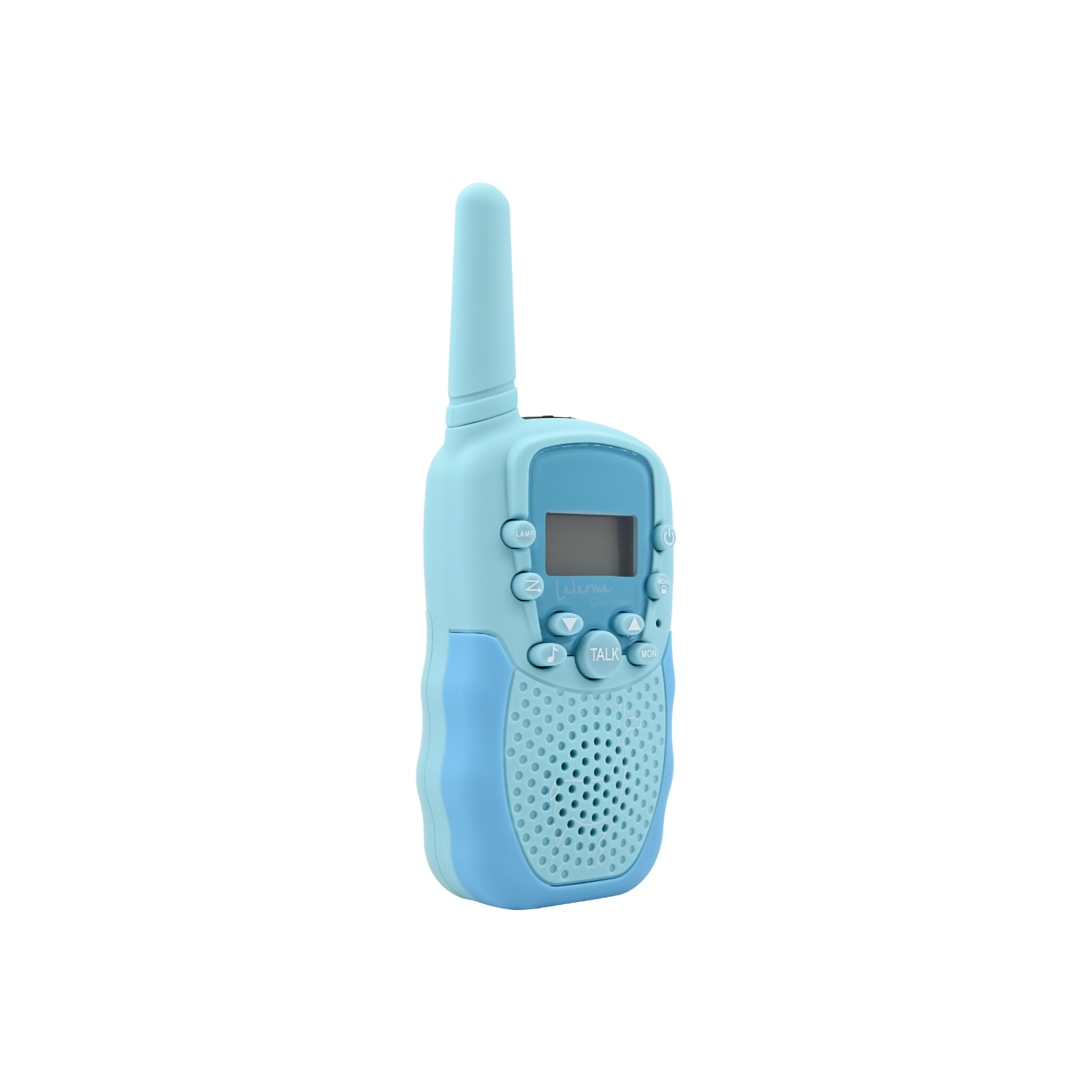 4 colores frescos. Bonito acabado de goma. Se vende por unidad para adaptarse a cualquier combinación familiar. Alcanza hasta 3 km, en espacios abiertos. Conecta tantos dispositivos como quieras. Linterna incorporada. HECHO DE PLÁSTICO RECICLADO