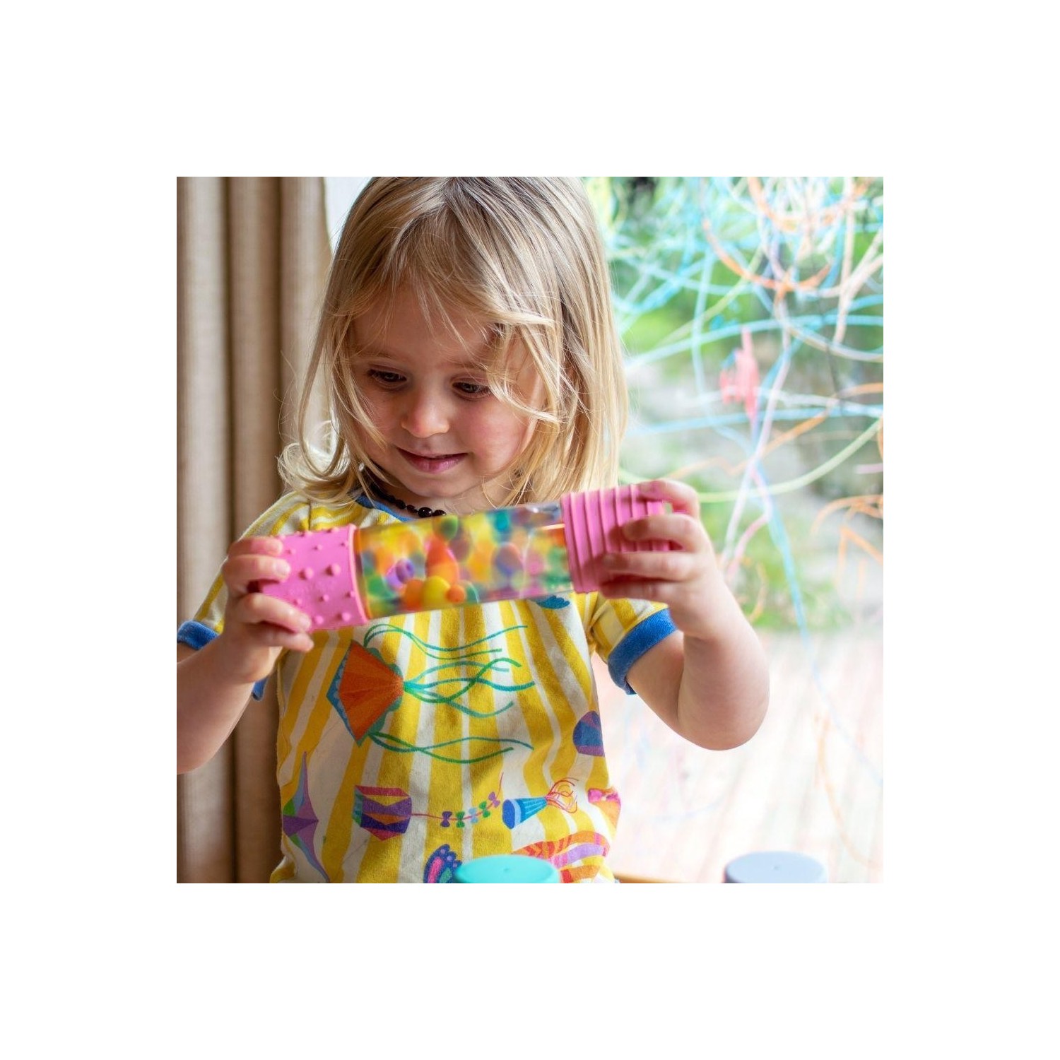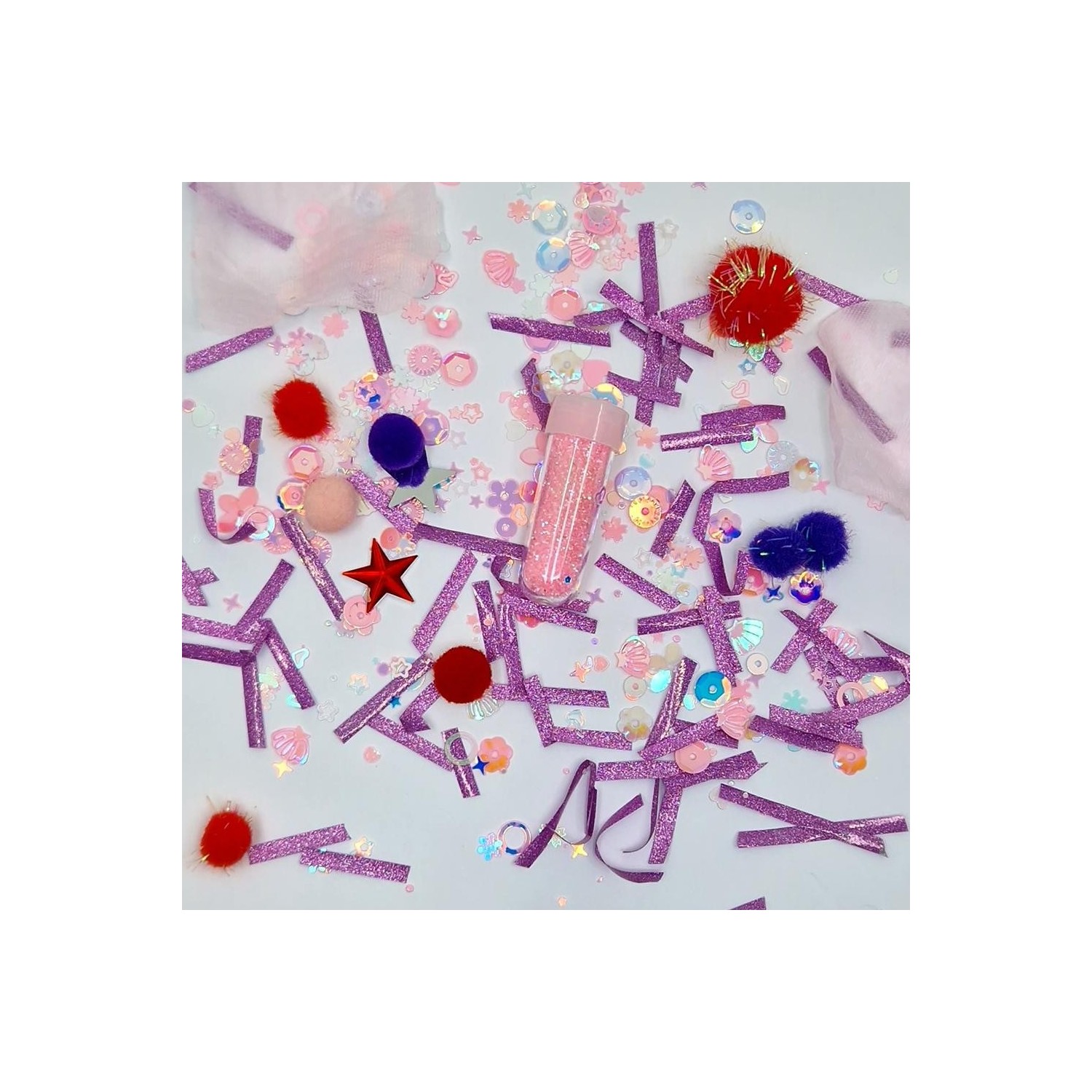 El kit incluye todos los elementos necesarios para confeccionar tu propia botella sensorial. Solo tienes que añadir agua tibia y los accesorios incluidos: confeti, purpurina y pequeños juguetes. ¡Montarla es tan divertido como jugar con ella! Se recomienda la ayuda de un adulto para los más pequeños. Una vez lista, puedes reinventarla cambiando el agua y añadiendo abalorios, colorantes o pequeños objetos que tengas en casa.