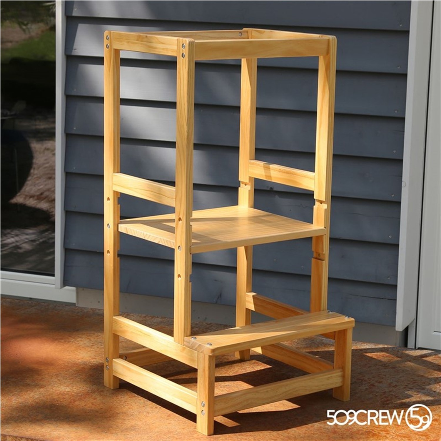 Torre de aprendizaje fabricada en madera de pino. Ideal para desarrollar habilidades manipulativas, destreza al tocar y agarrar. Desarrolla la coordinación mano-ojo, esta torre es la compañera perfecta para explorar el mundo. . La estructura tiene tres posiciones de altura y está pensada para crecer a medida que lo hace el niño, aguanta un peso máximo de 50 kgs.Medidas caja: 87 x 6,50 x 44 cm