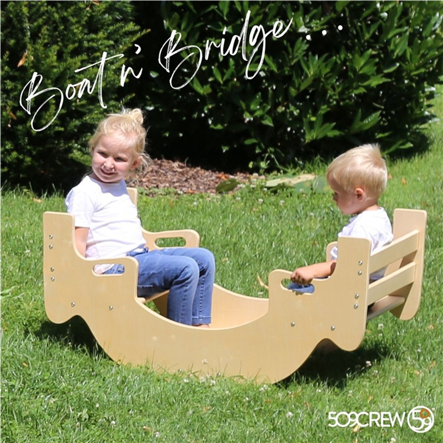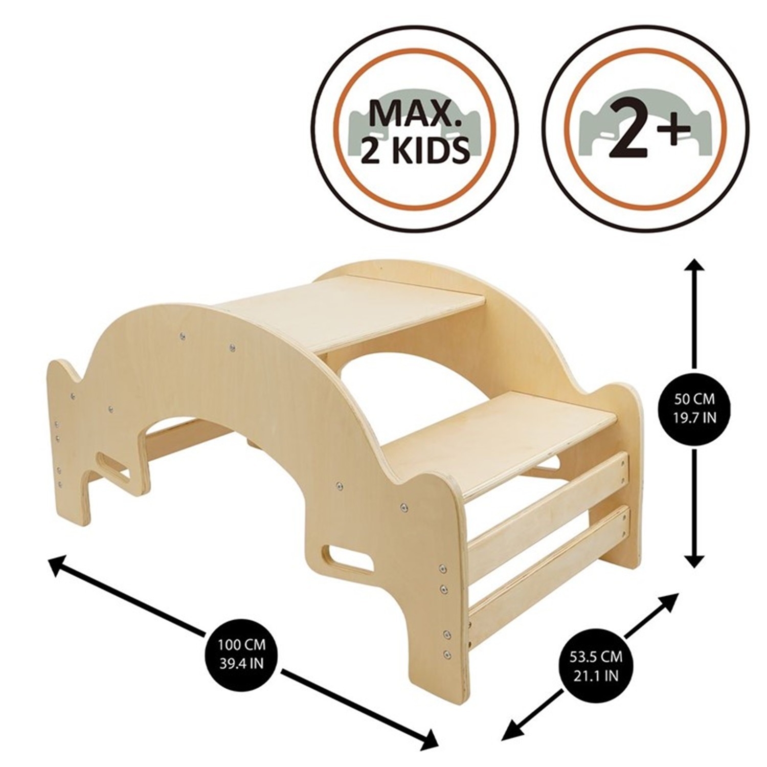 Estructura de madera de abedul contrachapada con doble uso, por un lado puede ser un balancín con dos asientos y por el otro se convierte en una mesa con dos sitios para sentarse. Soporta un peso máximo de 60 kgs. Apto a partir de 3 años.Medidas caja: 101 x 7 x 52 cm