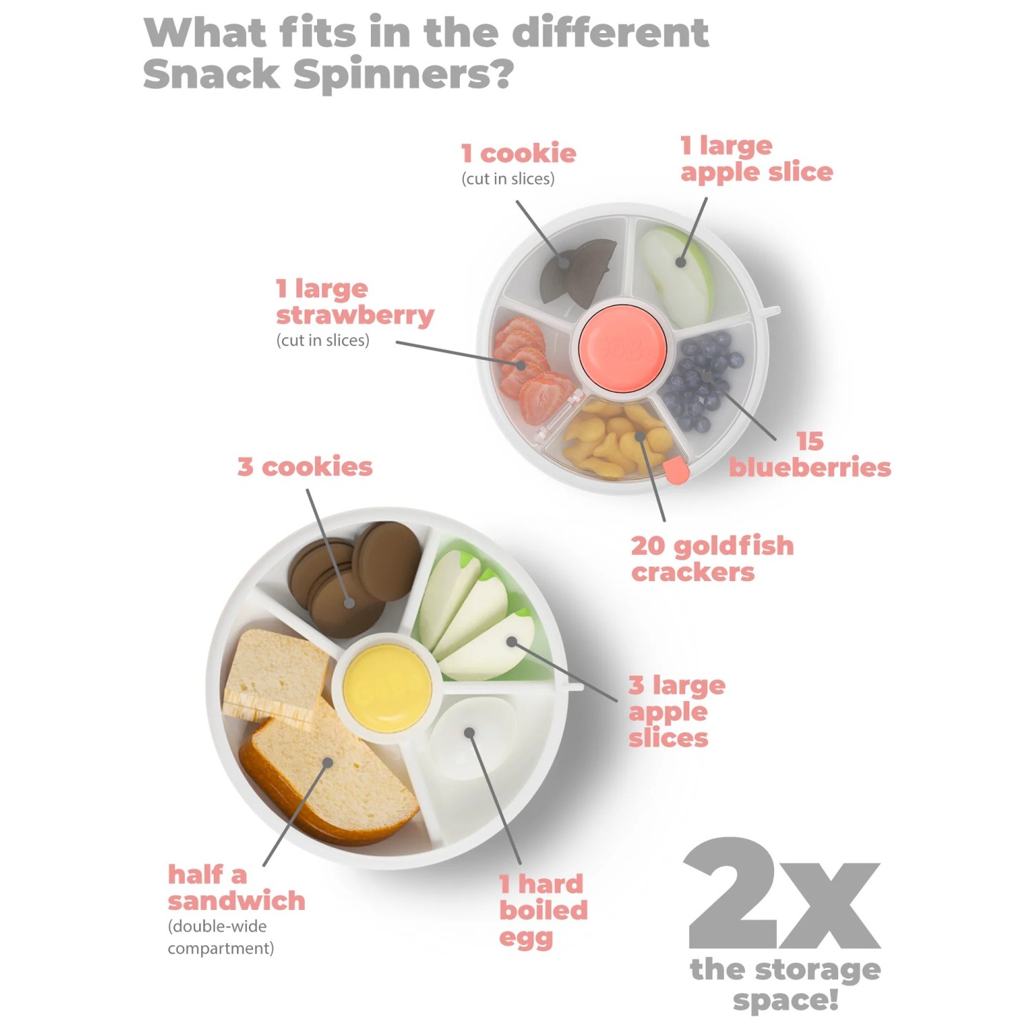 Diseño resistente: Fabricado con materiales libres de BPA, PVC y ftalatos, el GoBe Snack Spinner es resistente a derrames y ha sido probado contra caídas al menos 10 veces.