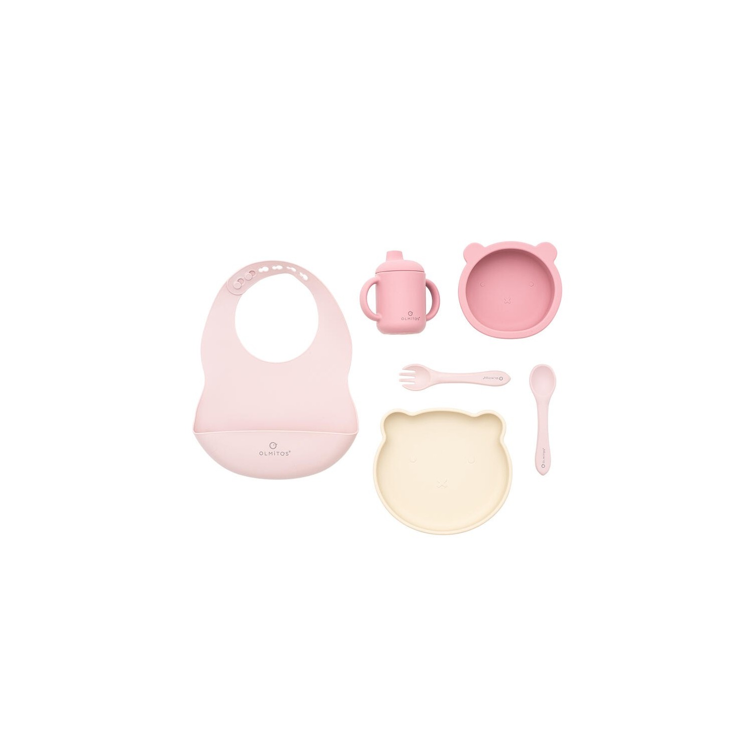 Contiene: Babero, plato, bol, cuchara, tenedor y vaso con boquilla. Silicona de alta calidad de grado alimenticio aprobada por LFGB.