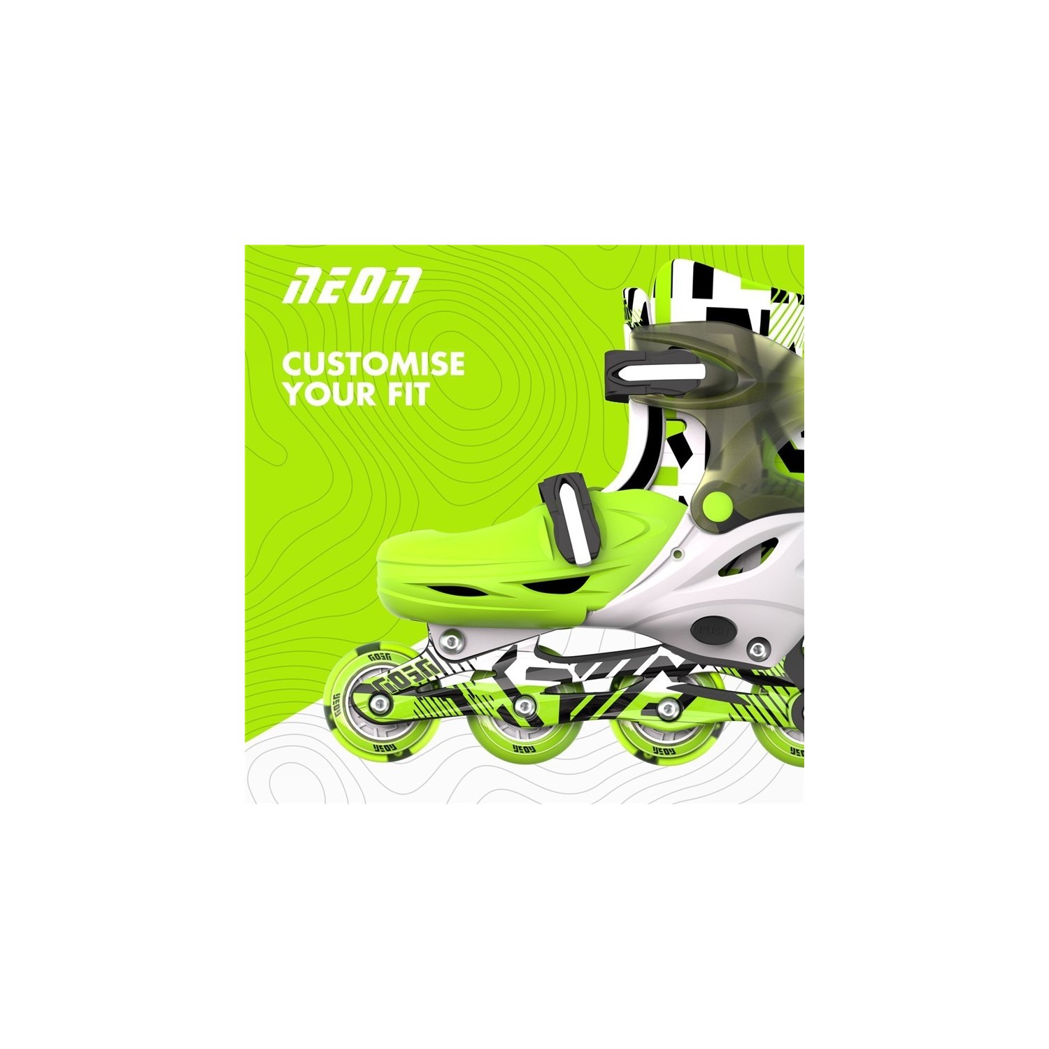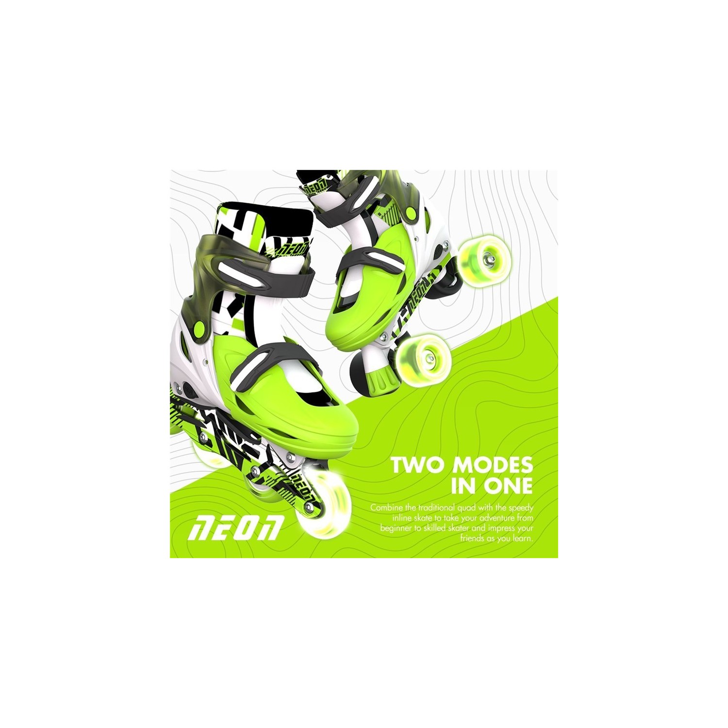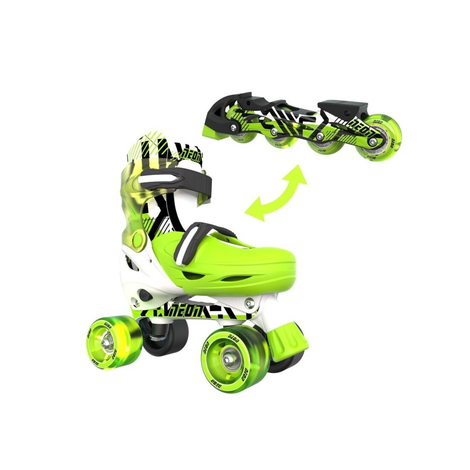 Los patines combo neón 2 en 1 son perfectos para principiantes aventureros. Nuestros patines en línea y cuádruples de cuatro ruedas te permitirán impresionar a tus amigos y mostrar tus habilidades de patinaje. ¡Los patines combo neón te brindan horas de diversión y brillan donde quiera que vayas con las ruedas iluminadas!. Con un tamaño ajustable, puede cambiar el tamaño de estos patines para asegurarse de que su hijo los use tanto como sea posible. Simplemente mueva la puntera interior hacia adelante y hacia atrás en la bota para aumentar o disminuir el tamaño según sea necesario.
