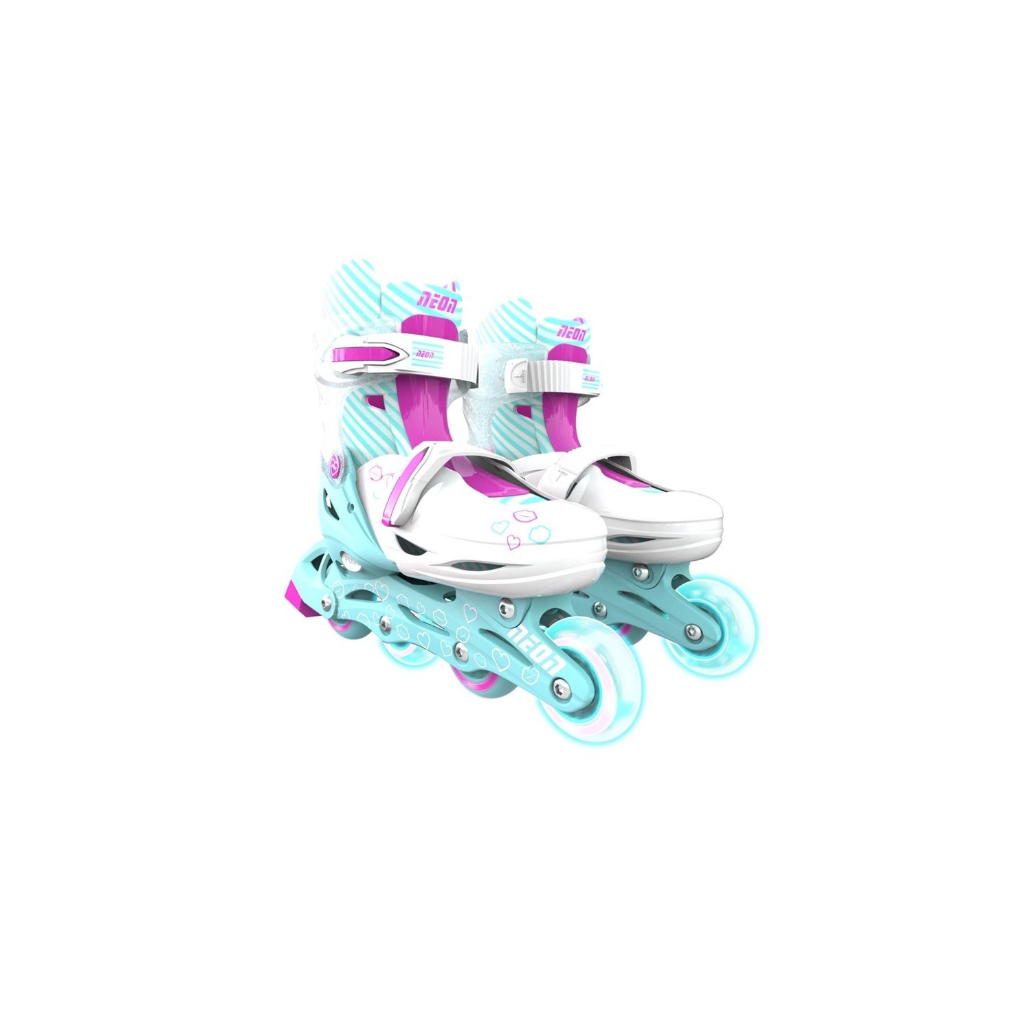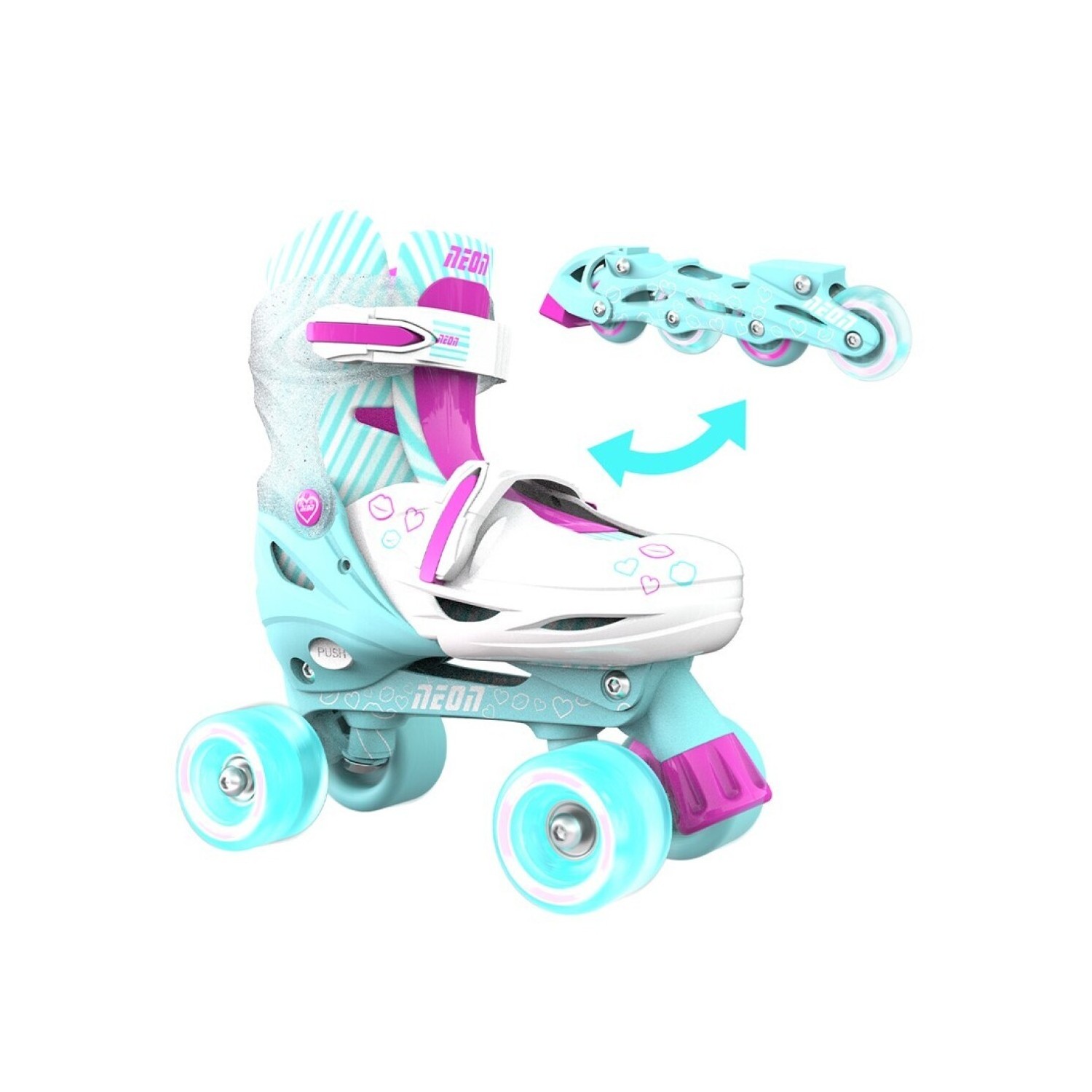 Los patines combo neón 2 en 1 son perfectos para principiantes aventureros. Nuestros patines en línea y cuádruples de cuatro ruedas te permitirán impresionar a tus amigos y mostrar tus habilidades de patinaje. ¡Los patines combo neón te brindan horas de diversión y brillan donde quiera que vayas con las ruedas iluminadas!. Con un tamaño ajustable, puede cambiar el tamaño de estos patines para asegurarse de que su hijo los use tanto como sea posible. Simplemente mueva la puntera interior hacia adelante y hacia atrás en la bota para aumentar o disminuir el tamaño según sea necesario.