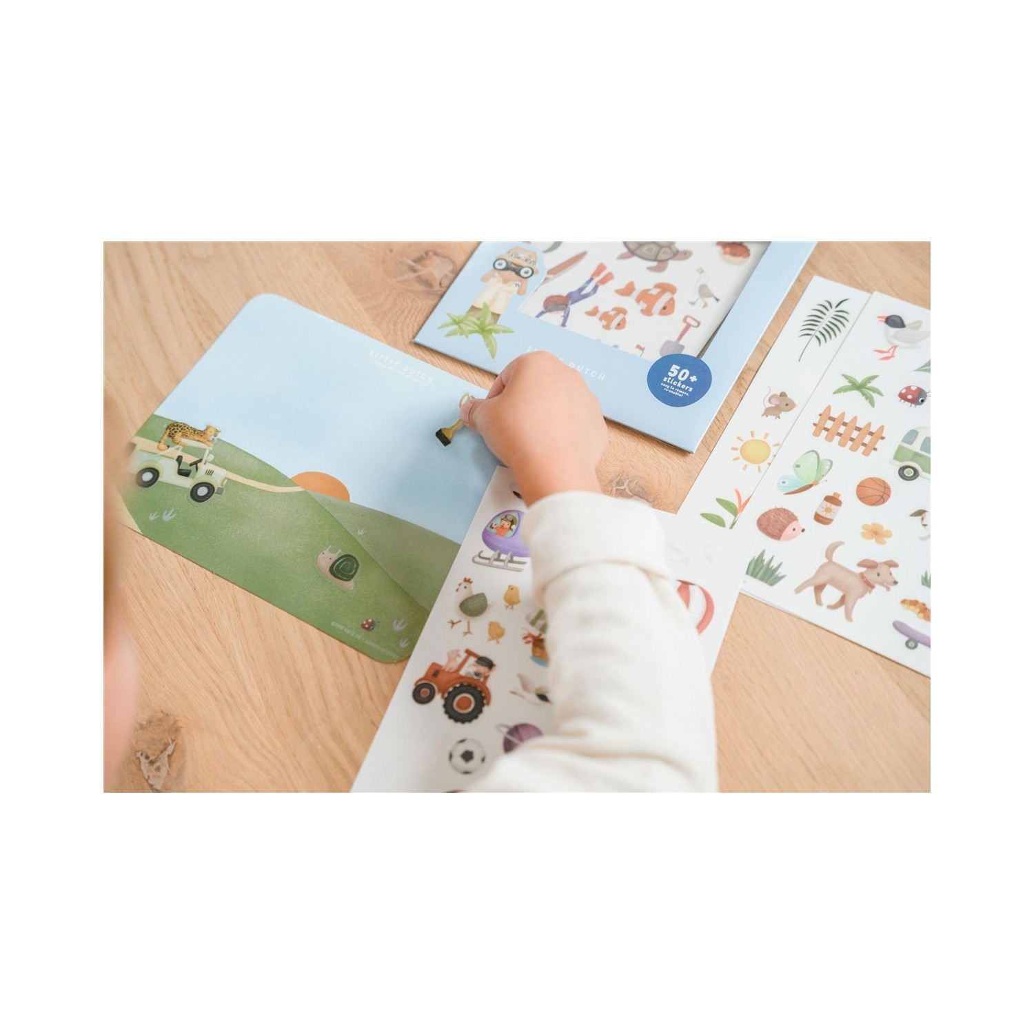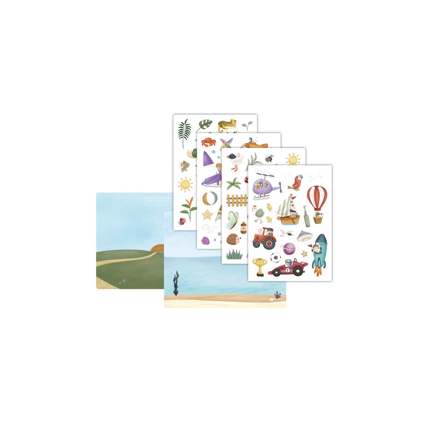 Blister que contiene 4 hojas de pegatinas estáticas y un escenario. Fáciles de despegar, se pueden reutilizar, aptas para cualquier superficie lisa, por ejemplo: ventanas, espejos, objetos de vidrio, baldosas.