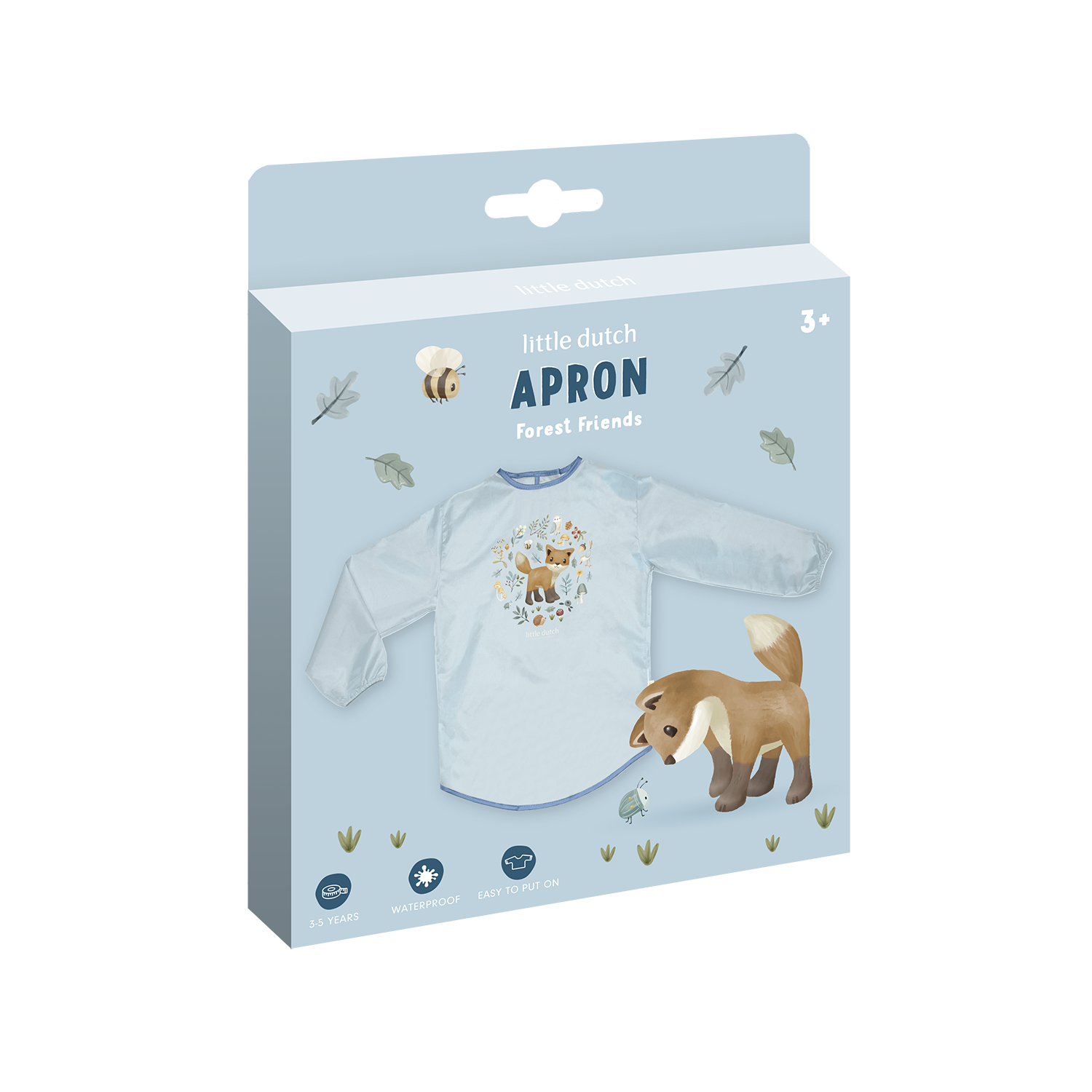 Bata de arte rosa de la colección Forest Friends de Little Dutch. Se cierra con un velcro en la parte trasera y tiene goma elástica en las empuñaduras.