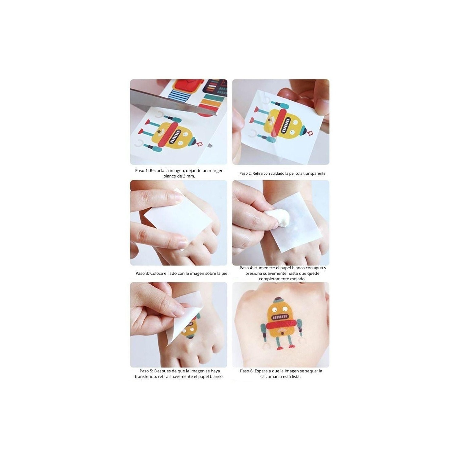 Los tatuajes y pegatinas son impermeables y resistentes, con colores brillantes y detalles cuidados que se adaptan bien a todos los tonos de piel. Están fabricados con materiales seguros, no tóxicos y suaves, adecuados para la piel infantil.