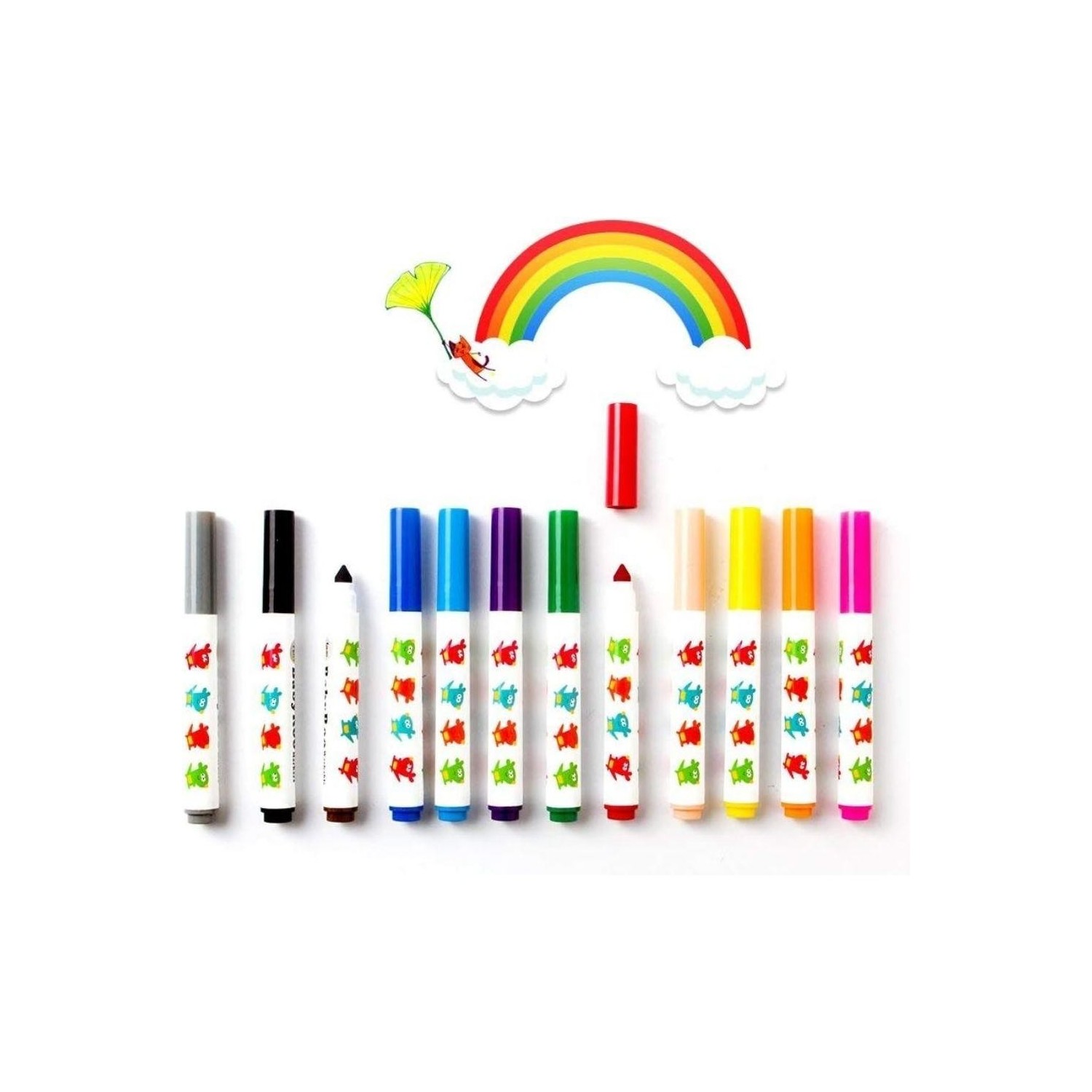 Bote con 12 rotuladores lavables Jarmelo diseñados para que los más pequeños dibujen y coloreen con comodidad, seguridad y libertad creativa. La forma ergonómica facilita el agarre de manos pequeñas y acompaña la autonomía desde el primer uso.