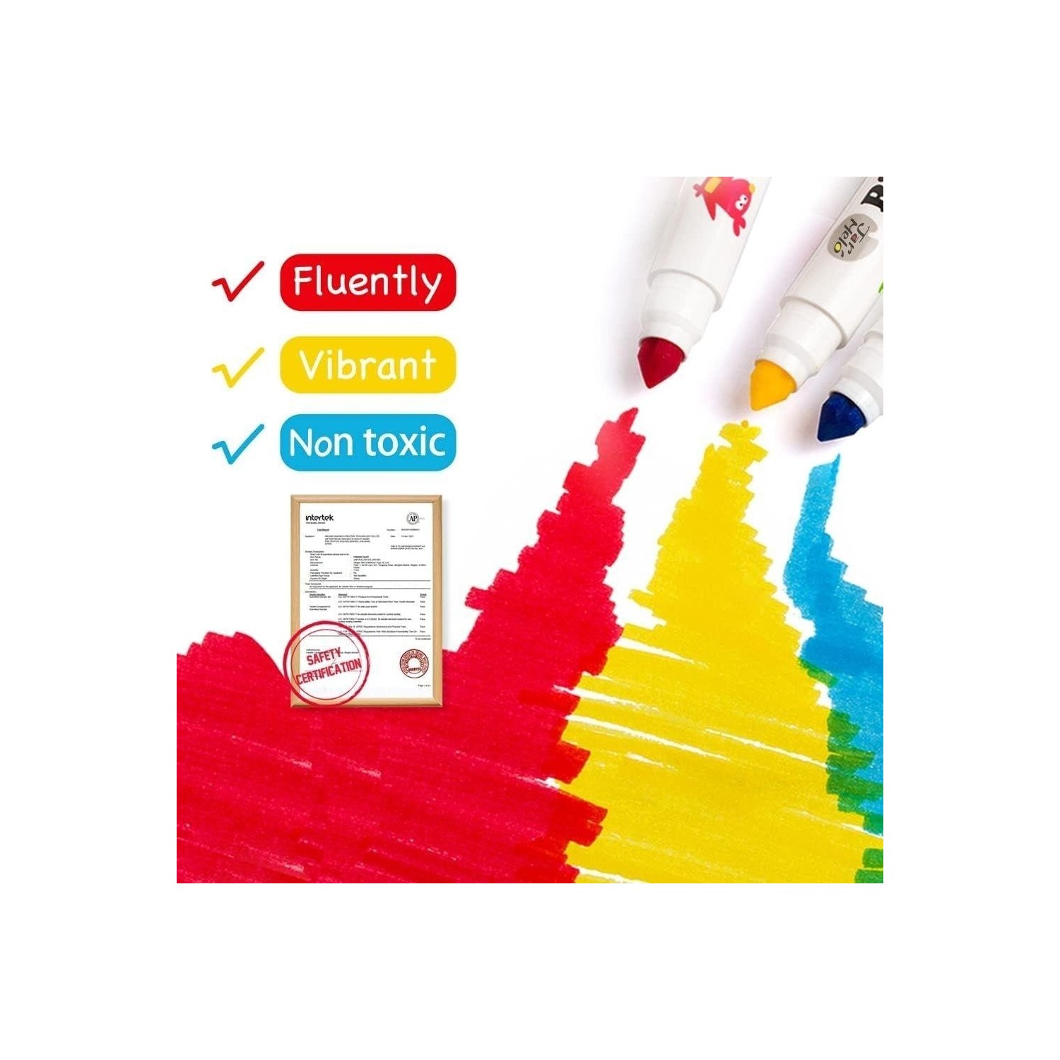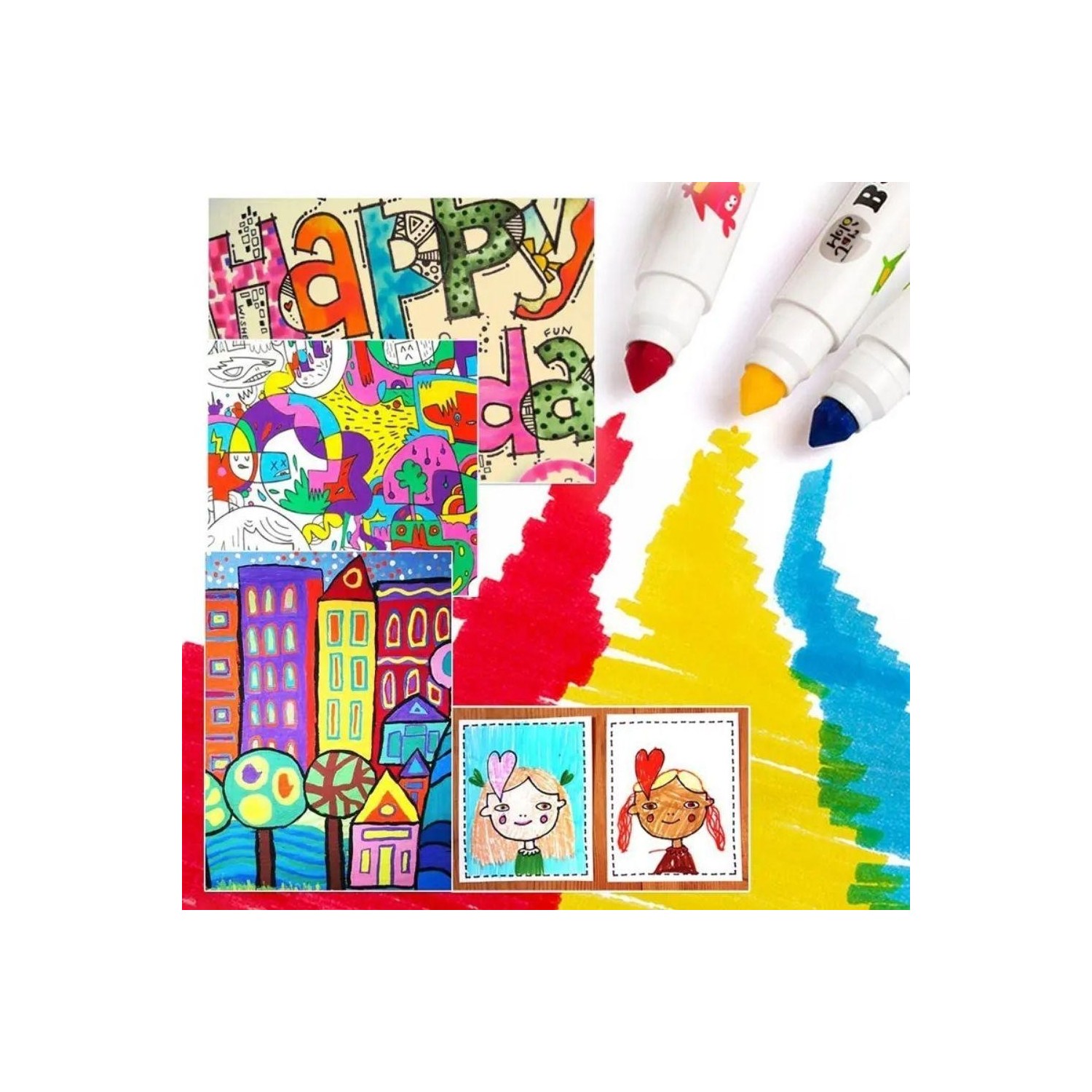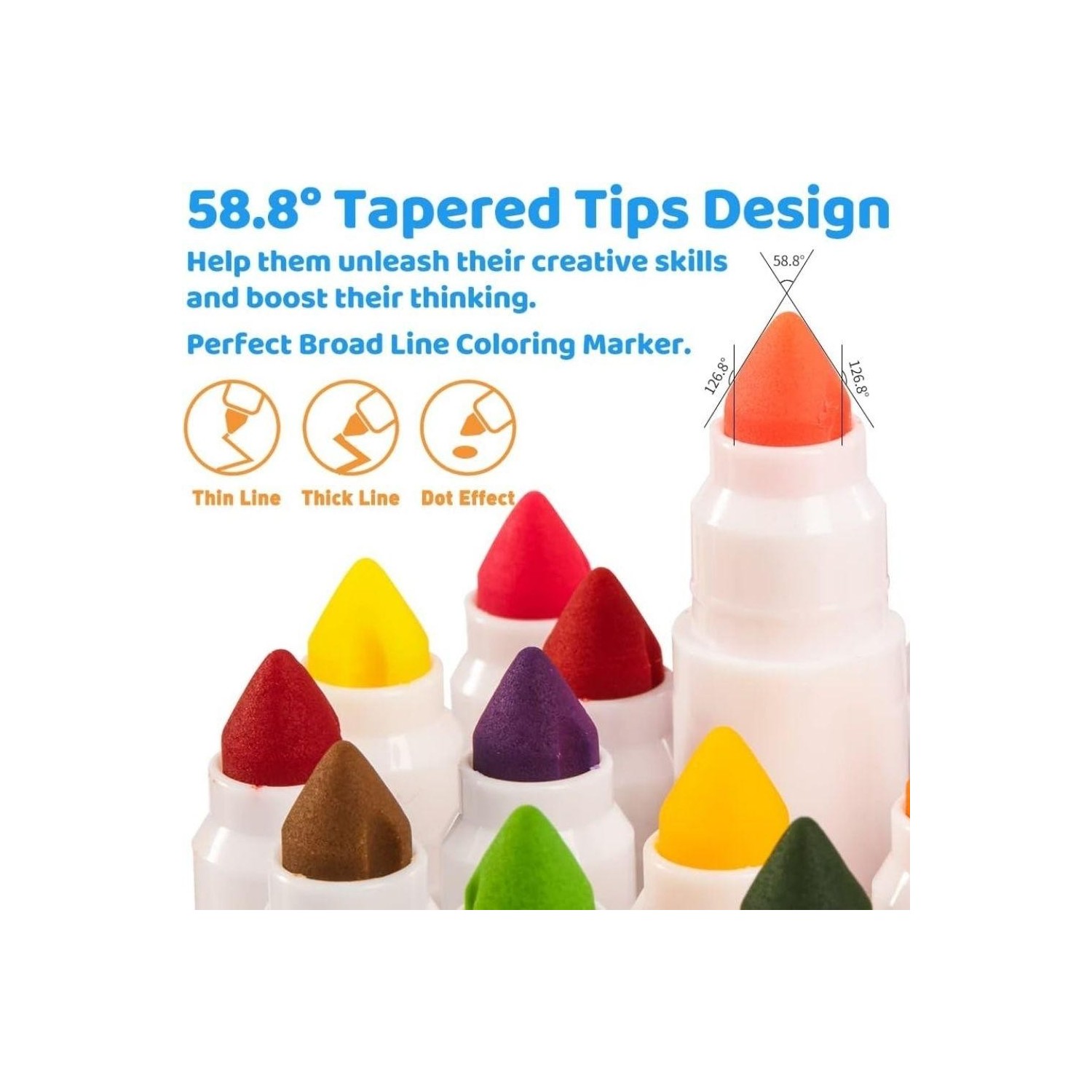 La punta cónica permite variar el grosor del trazo según el ángulo: líneas finas para detalles y trazos anchos para rellenar sin esfuerzo. Los colores son uniformes y fluidos, ideales para colorear, dibujar, garabatear y dar forma a proyectos en casa o en el aula.