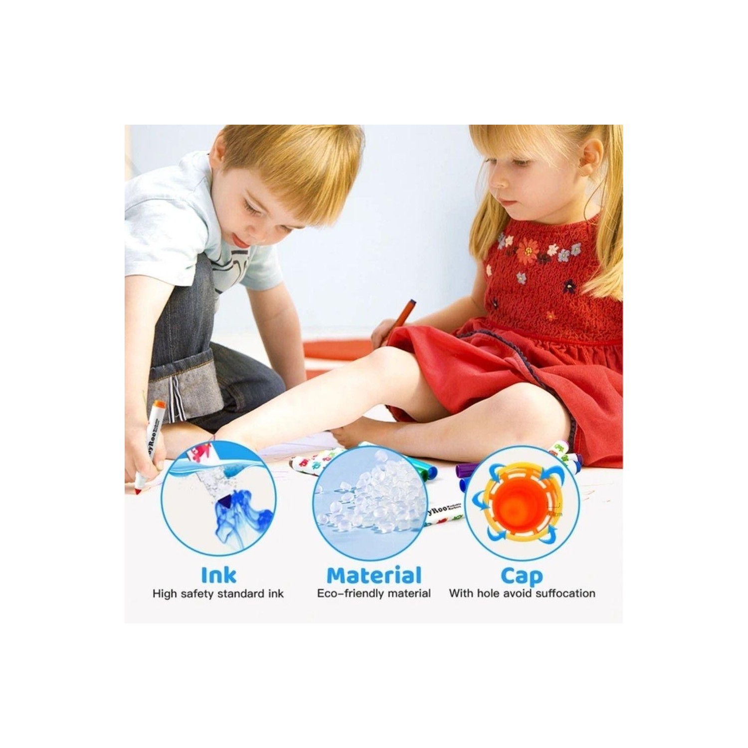 La tinta es lavable y no tóxica, suave al deslizar y fácil de retirar con agua de la piel y la mayoría de tejidos, para que el proceso creativo se viva con tranquilidad. Un set que acompaña la motricidad fina, la coordinación ojo-mano y la expresión personal desde edades tempranas.
