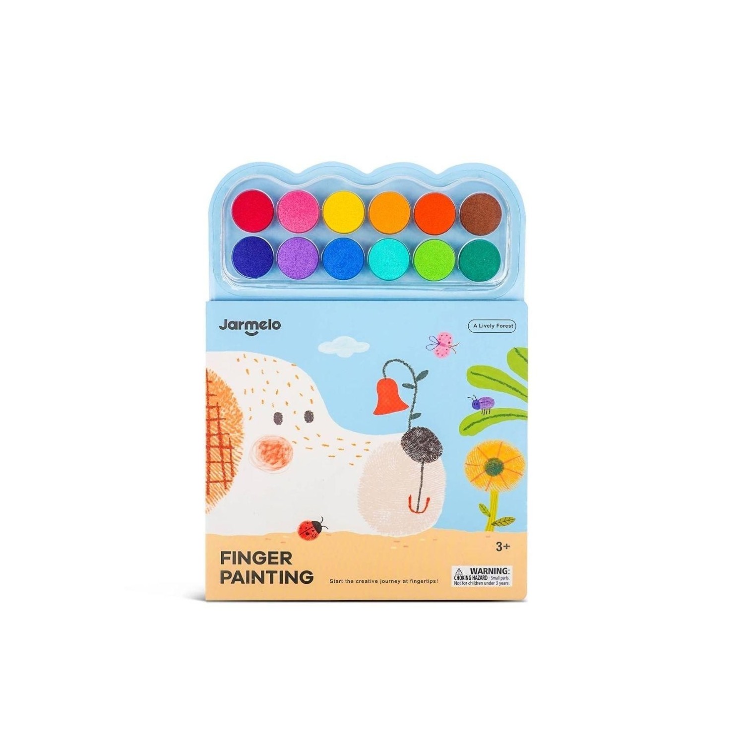 El Bosque Animado de Jarmelo es un libro creativo de pintura con huellas dactilares pensado para que los niños se inicien en el arte a través del juego sensorial y el descubrimiento.