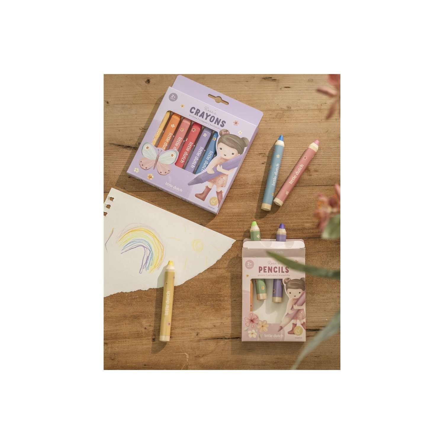 Lápices de colores de madera de la colección de la muñeca Rosa de Little Dutch, pack de 6 lápices.