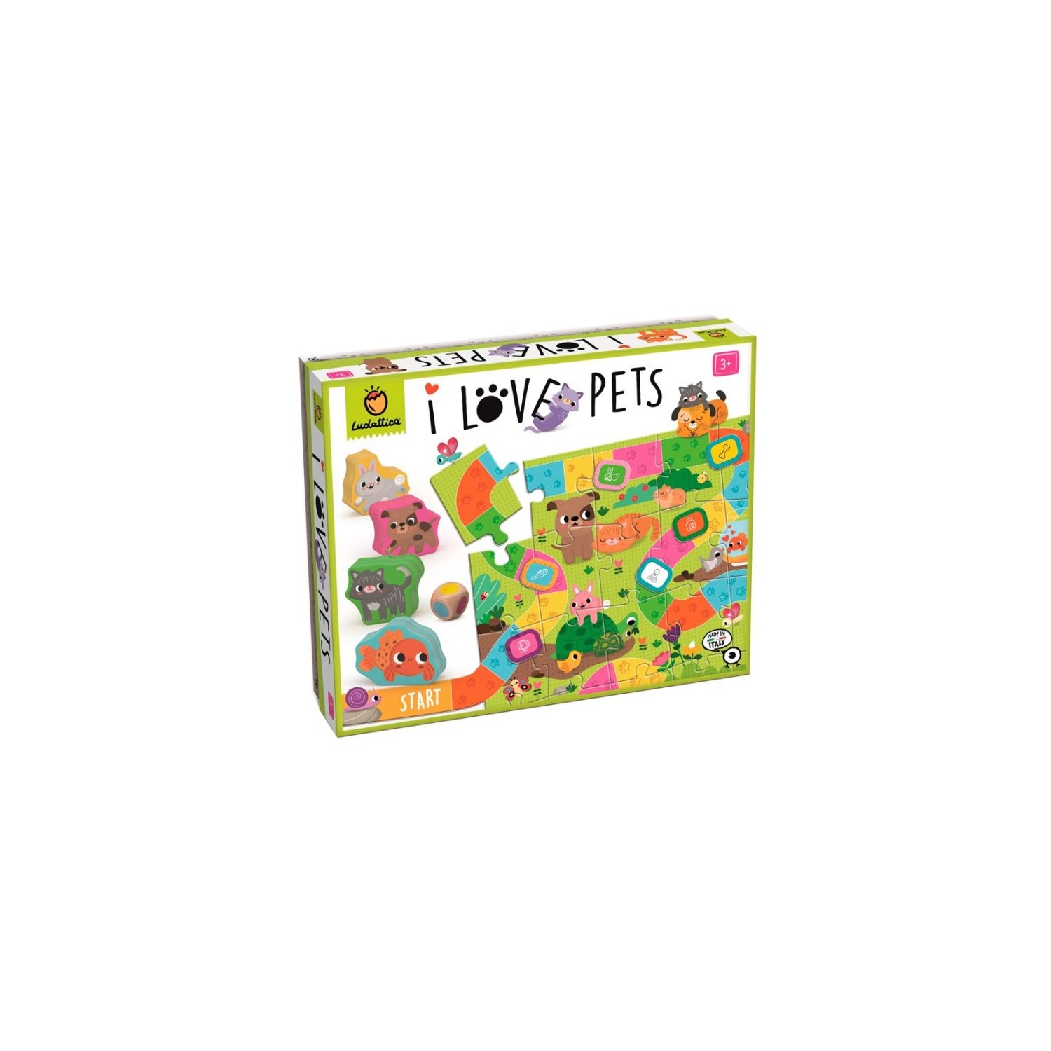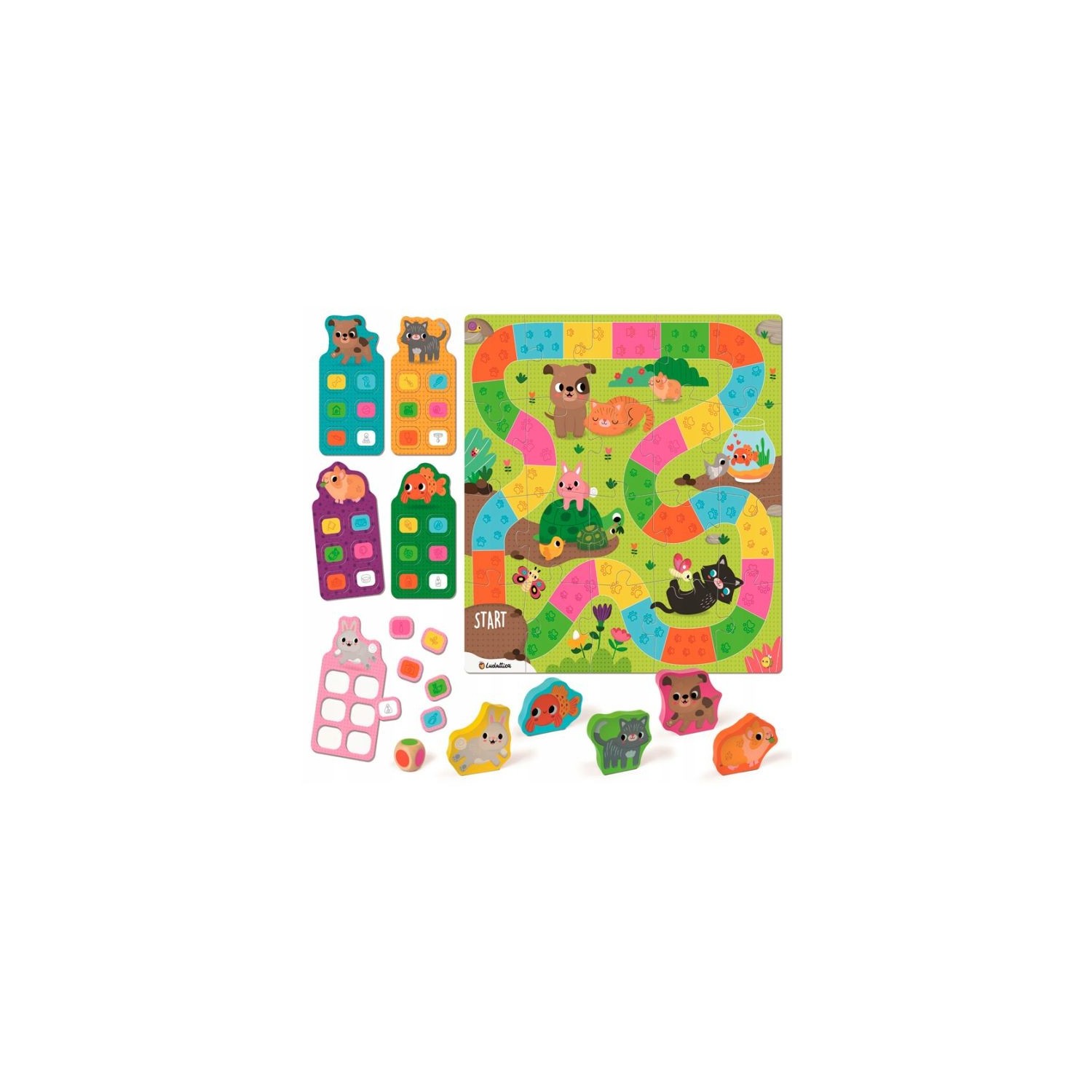 Juego de recorrido para cuidar mascotas y aprender los colores I love pets, de Ludattica.
