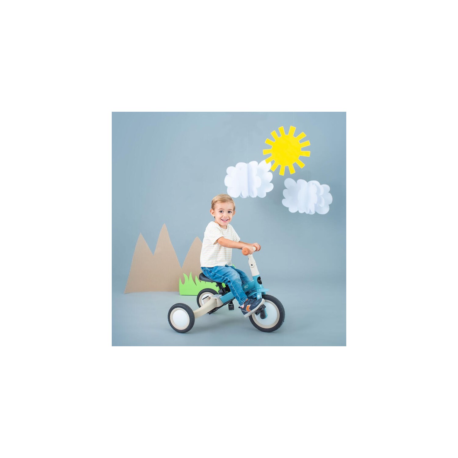 • Provisto de un sencillo sistema que permite transformar la bicicleta sin herramientas y ajustarla a la edad del niño.
