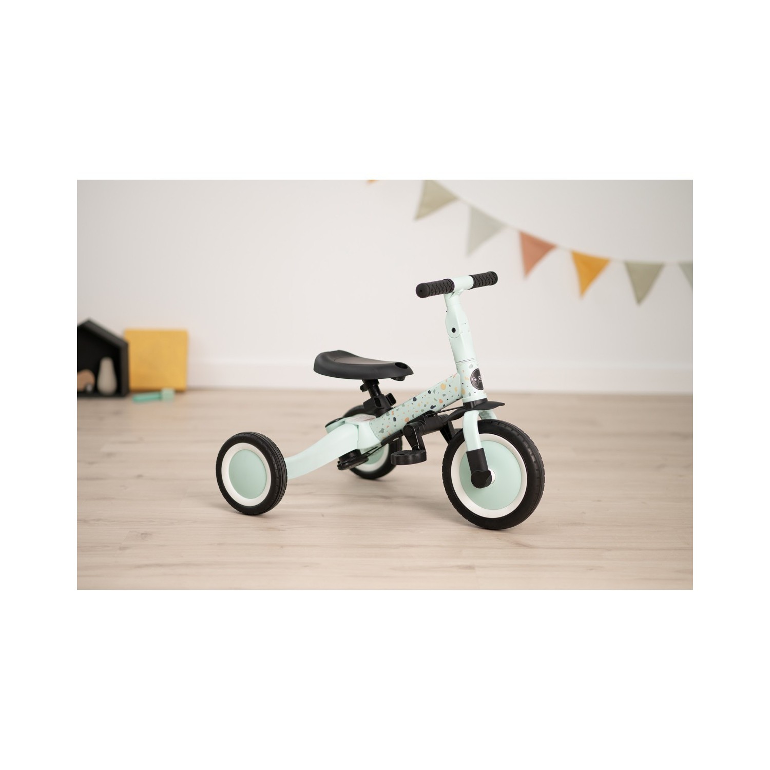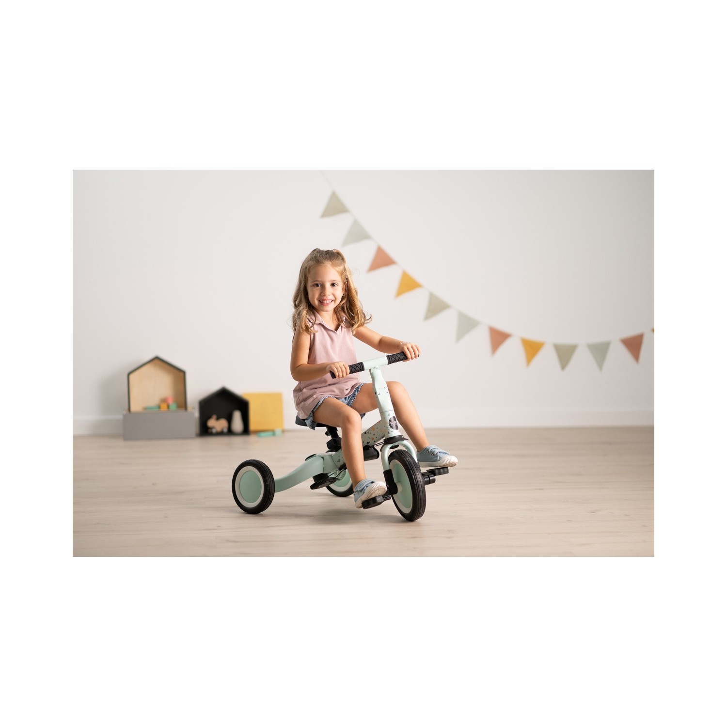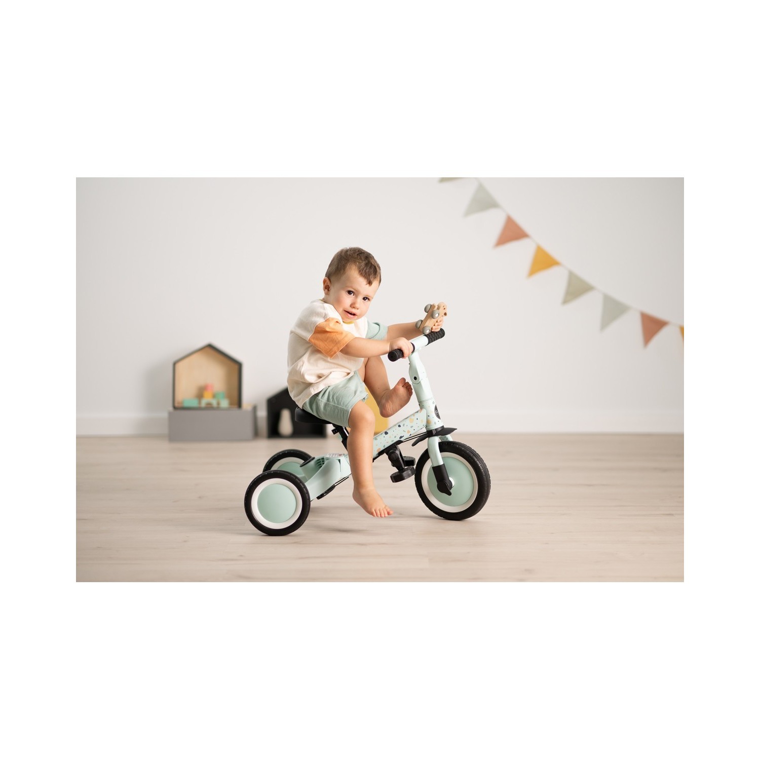 Diseñado para ofrecer la máxima comodidad y seguridad, incluye una práctica capota que protege a los más pequeños del sol para disfrutar de los paseos al aire libre sin preocupaciones. Además, su aro de protección añade una capa extra de seguridad para que el niño esté siempre seguro mientras explora su entorno. Y al igual que su hermano mayor Gyro, se adapta a las diferentes etapas del crecimiento del bebé, permitiendo su uso como triciclo guiado y, posteriormente, como triciclo y bici independiente.
