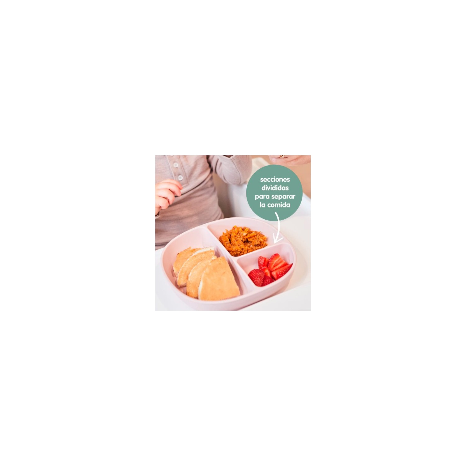 - Lados curvos para coger fácilmente la comida sin ensuciar demasiado.