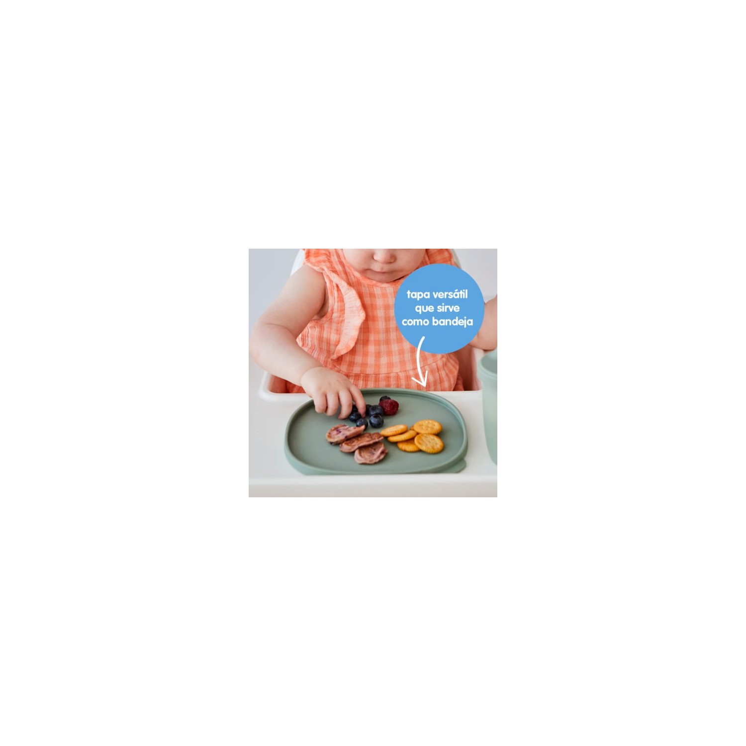 - Tapa a prueba de fugas versátil que también funciona como tapete para comer.