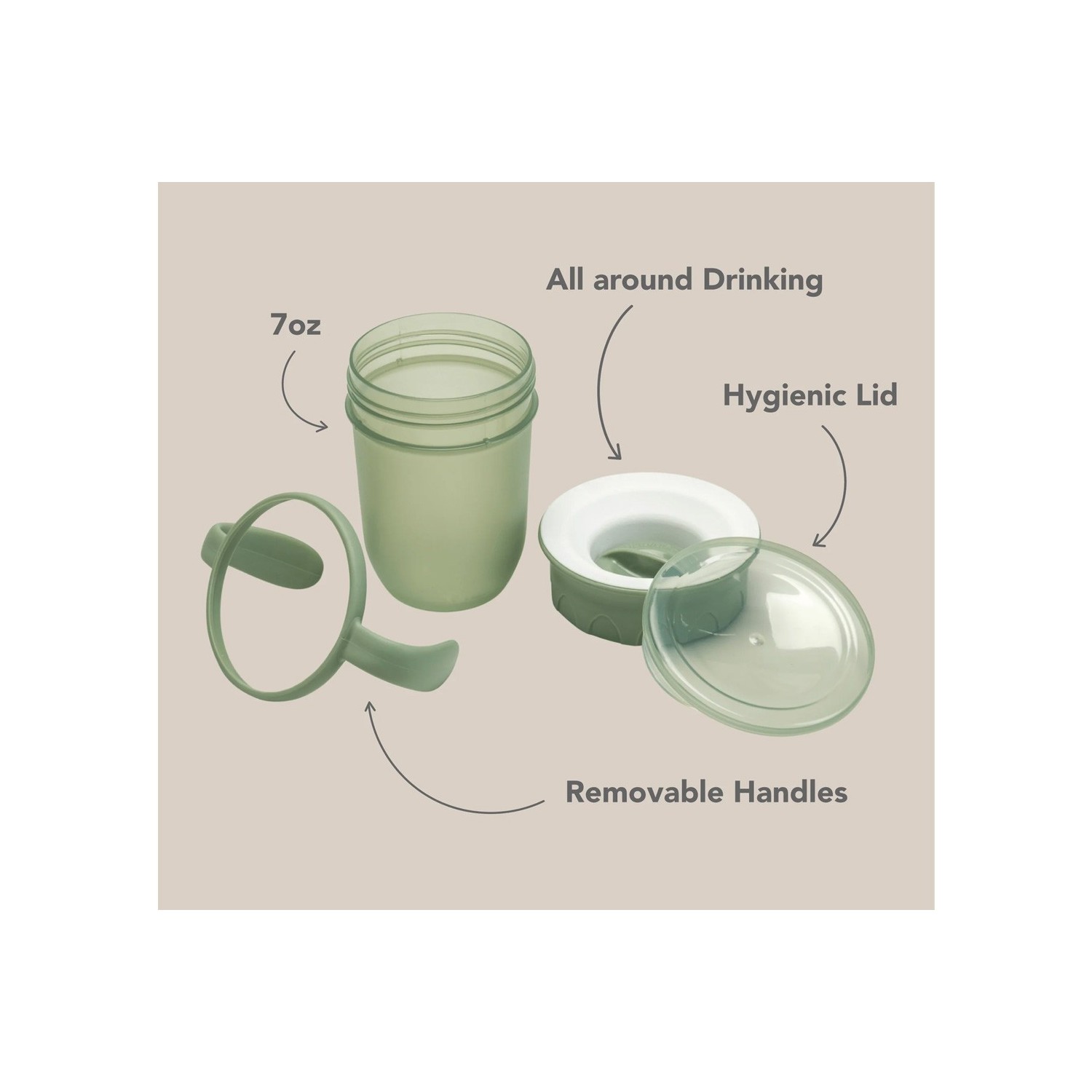 Incluye asas extraíbles para adaptarse a cada etapa del crecimiento y una tapa protectora que mantiene el borde limpio cuando no se está utilizando.