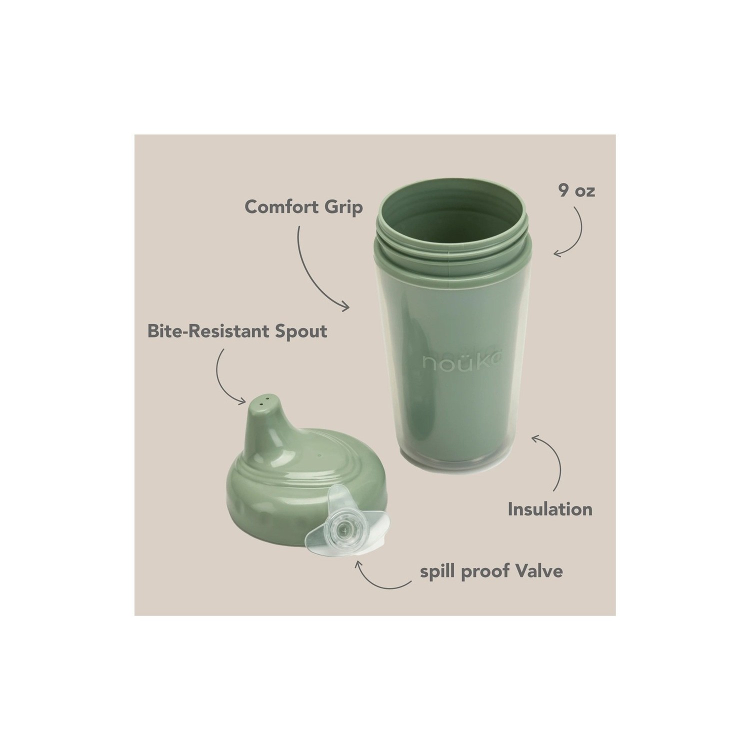 El vaso térmico Sippy Cup de Noüka es el compañero perfecto para mantener la bebida de tu peque a la temperatura ideal durante más tiempo. Gracias a su diseño de doble pared integrada, conserva el frío o el calor mejor que los vasos convencionales, sin que el exterior resulte incómodo de sujetar.