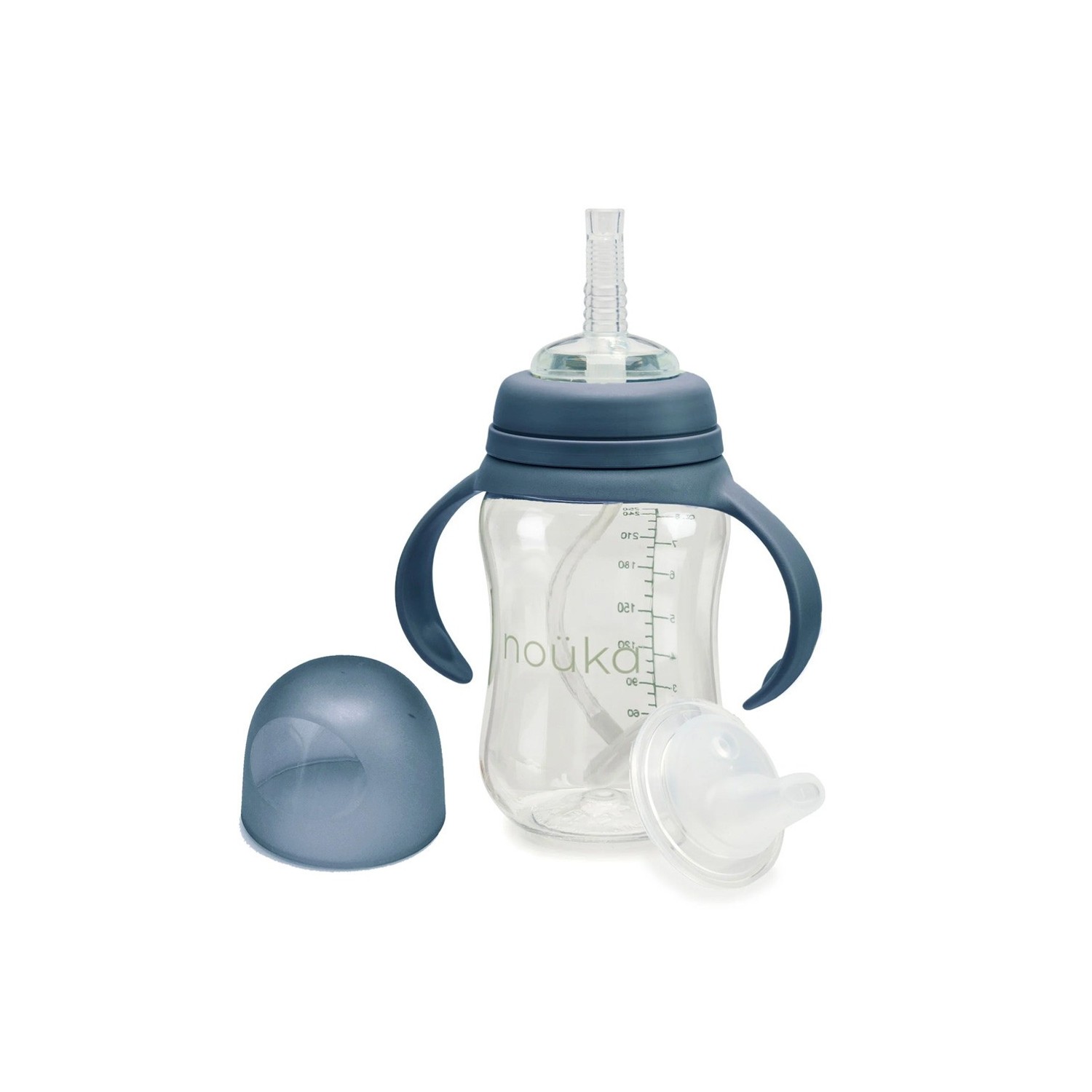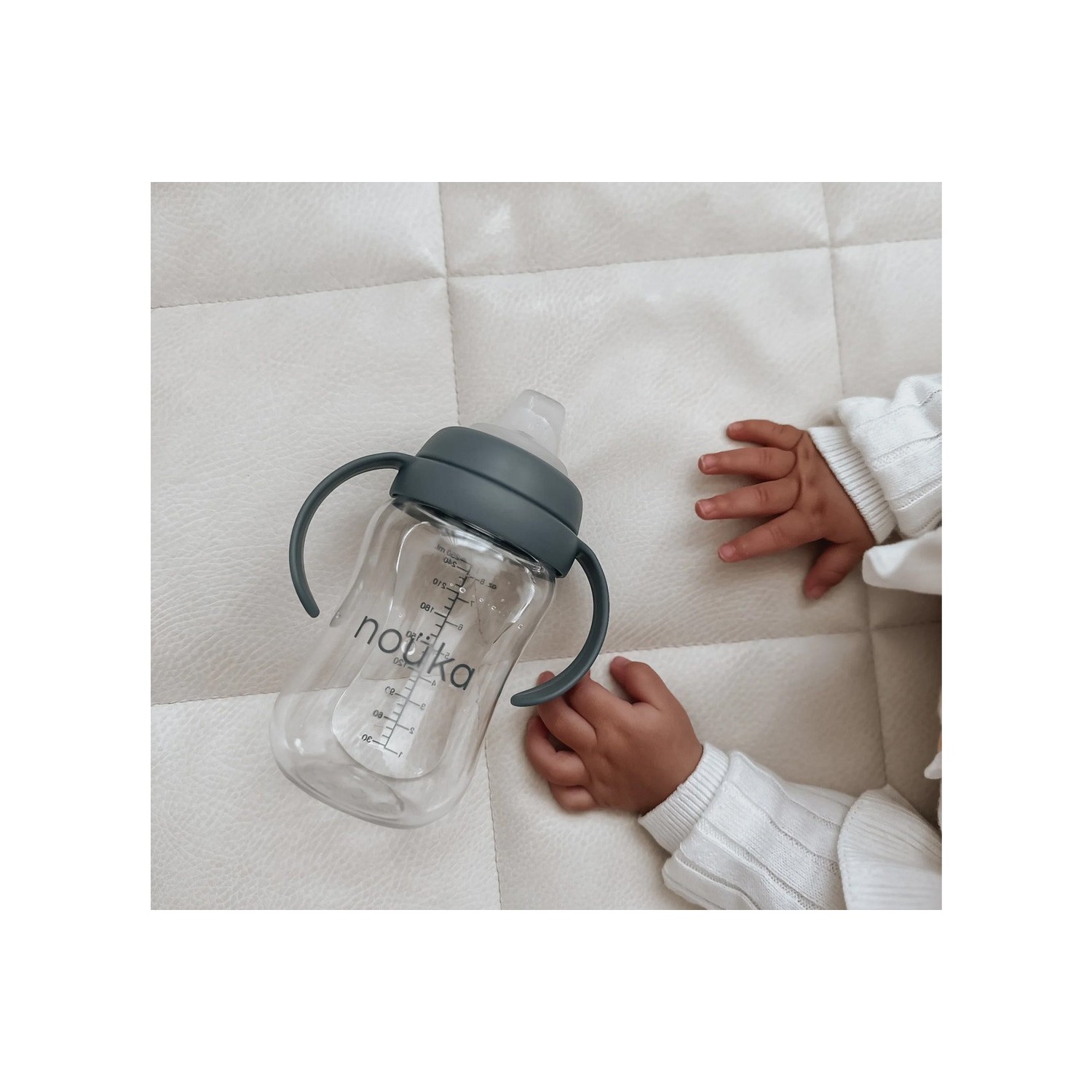 La taza transitional de Noüka es un vaso innovador diseñado para acompañar a tu bebé en la transición del pecho o biberón a la bebida independiente. Combina la funcionalidad de un vaso con pajita con peso y un vaso con boquilla antigoteo, facilitando que los más pequeños aprendan a beber de manera autónoma mientras desarrollan los músculos necesarios para hablar y comer.