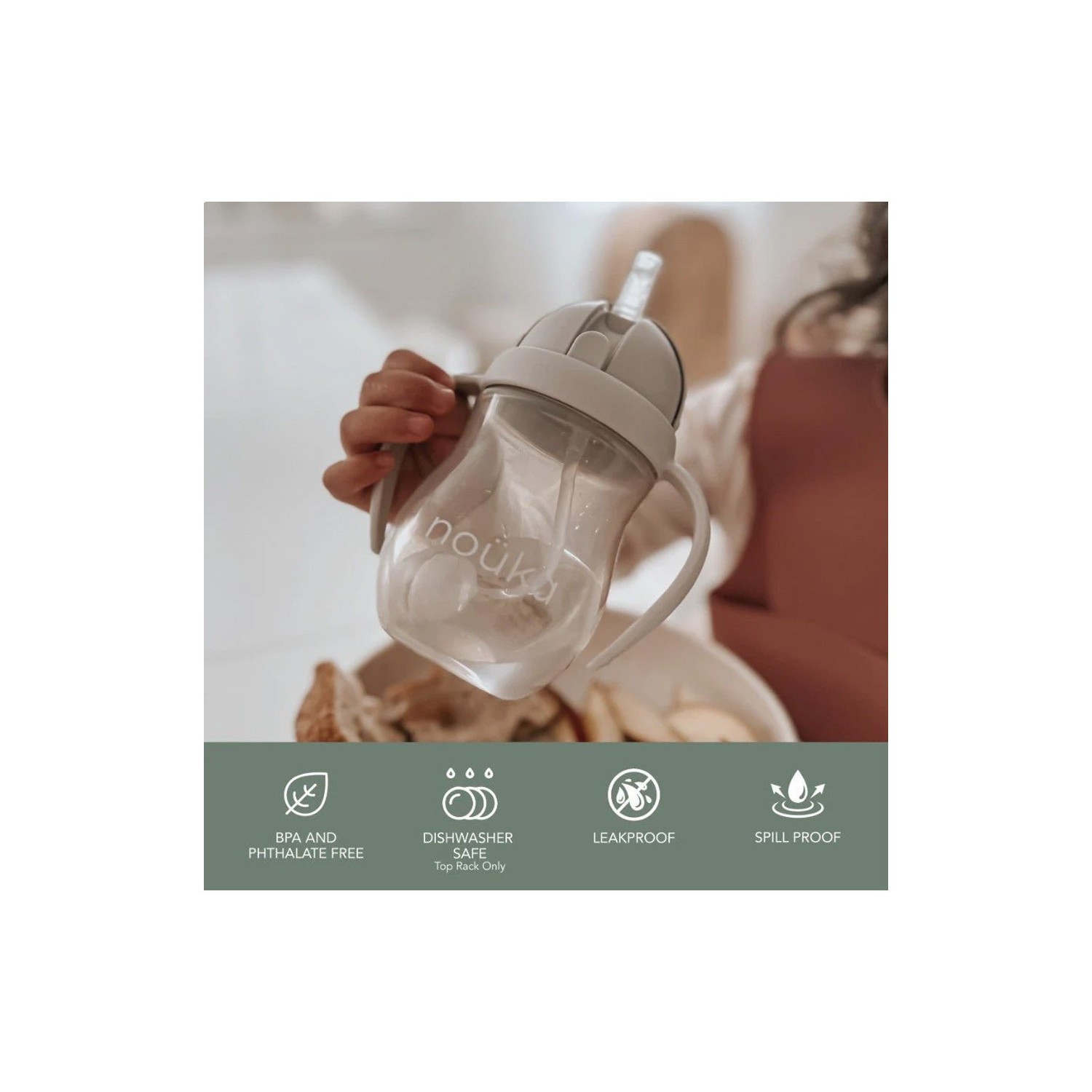 Taza antigoteo Non-Spill de Noüka está diseñado para ofrecer a bebés una experiencia de bebida cómoda, segura y sin derrames. Su innovadora pajita con peso permite que el líquido sea accesible desde cualquier ángulo, incluso cuando el vaso está boca abajo, mientras que la punta de silicona antigoteo previene accidentes y mantiene todo limpio.