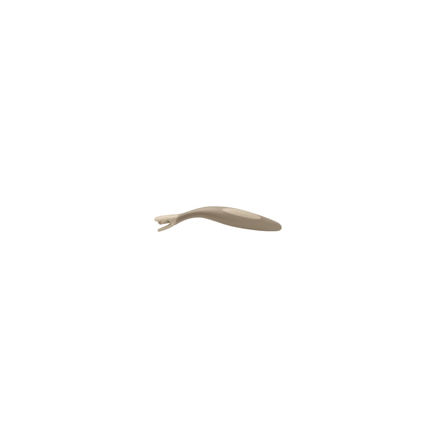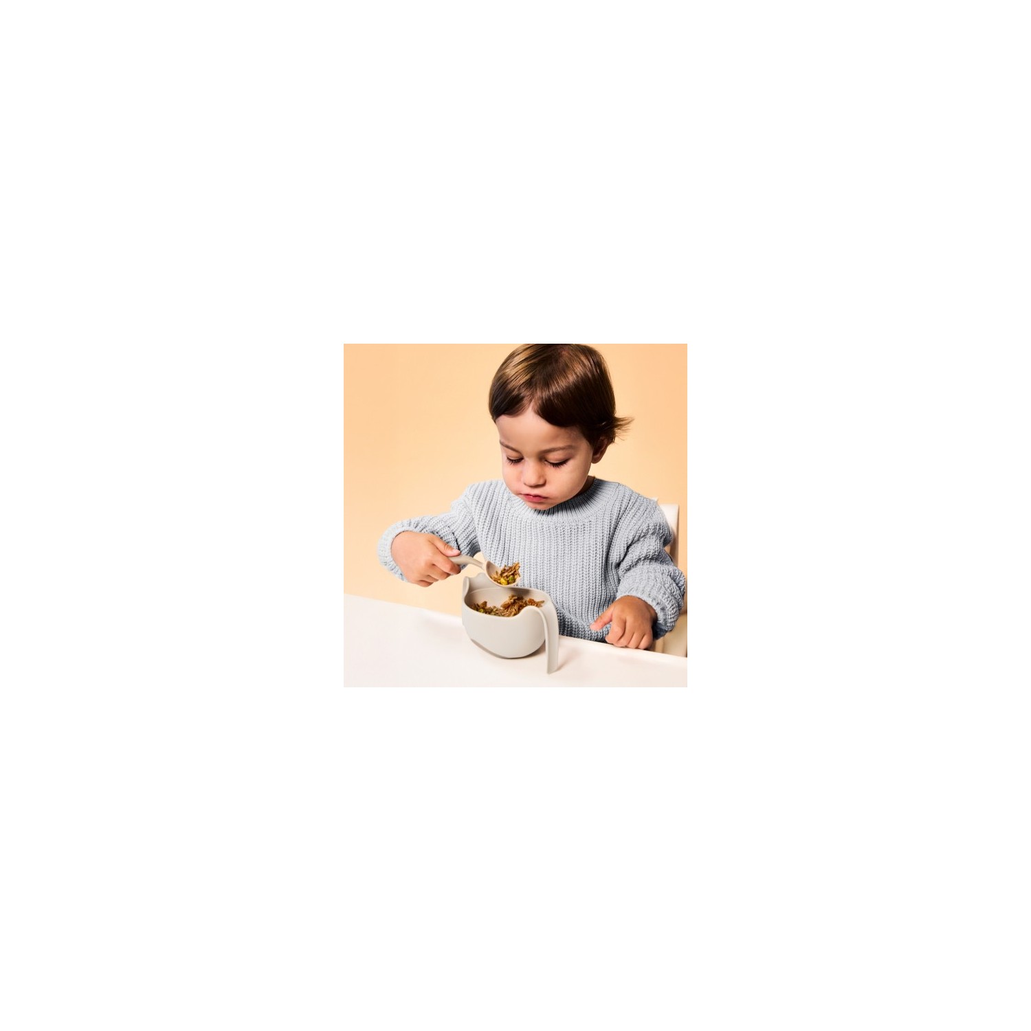 - Tenedor único diseñado para adaptarse al tamaño y la forma de las bocas de los niños. Su diseño ayuda a los niños a pinchar y levantar la comida con seguridad.